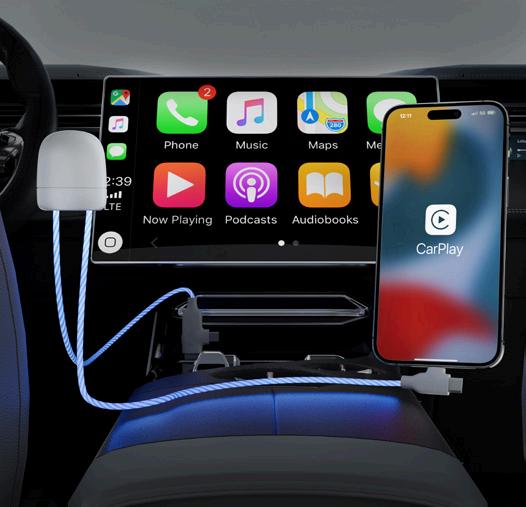 Denne 1 m ladekabelen har en innebygd Apple Find Mysporingsenhet som er kompatibel med iOS (Find My). Den har to porter (USB-A- og Type-C-inngang; Lightning- og Type-C-utgang), støtte for CarPlay og hurtiglading på opptil 60 W. Størrelse: 13 x 580 x 37 mm