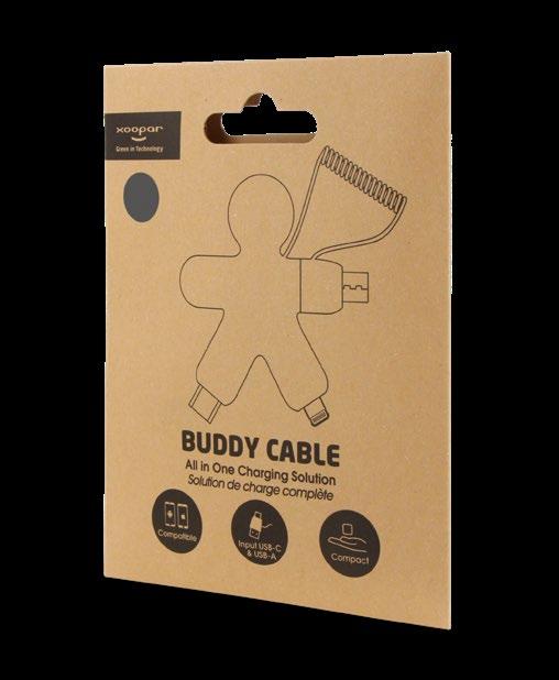 LT41008 | XP611372099 | Xoopar Mr. Bio Smart Charging cable with NFCMr. Bio Smart Charging is a multi-charging cable, with a dual USB & USB-C input connector, 3 different connectors to charge your devices and a integrated NFC chip. Mr. Bio Smart is made of recycled materials. The GRS certification ensures a completely certified supply chain and the total recycled content is 61%. Packed in a sustainable FSC-certified packaging. Size: 150x12x32mm