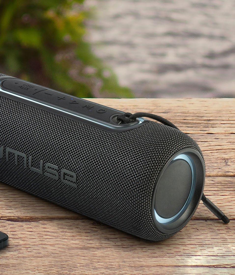 This portable splash-proof (IPX4) Bluetooth speaker from Muse has an output power of 5 Watts (RMS) and has a surprisingly good sound despite its small size. The ideal speaker to take with you on a trip to stream music from your smartphone via Bluetooth in your hotel room or at the edge of the swimming pool.Size: 78x53x95mm