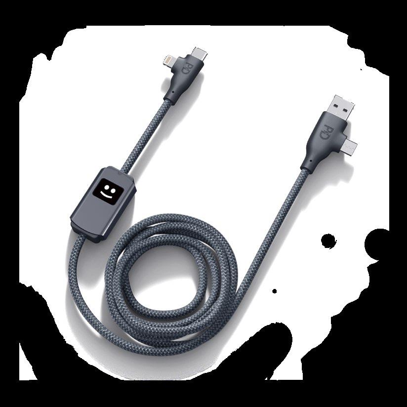 Power up smartly! Our GRS-certified charging cable handles up to 100W, compatible with MacBooks, laptops, tablets, and smartphones. Its smart smiley icon indicates fast (green) or regular (white) charging. Crafted from recycled aluminum and recycled plastic, it offers quality and sustainability, ensuring high-speed charging alongside data transfer. Size: 1100x23x10mm