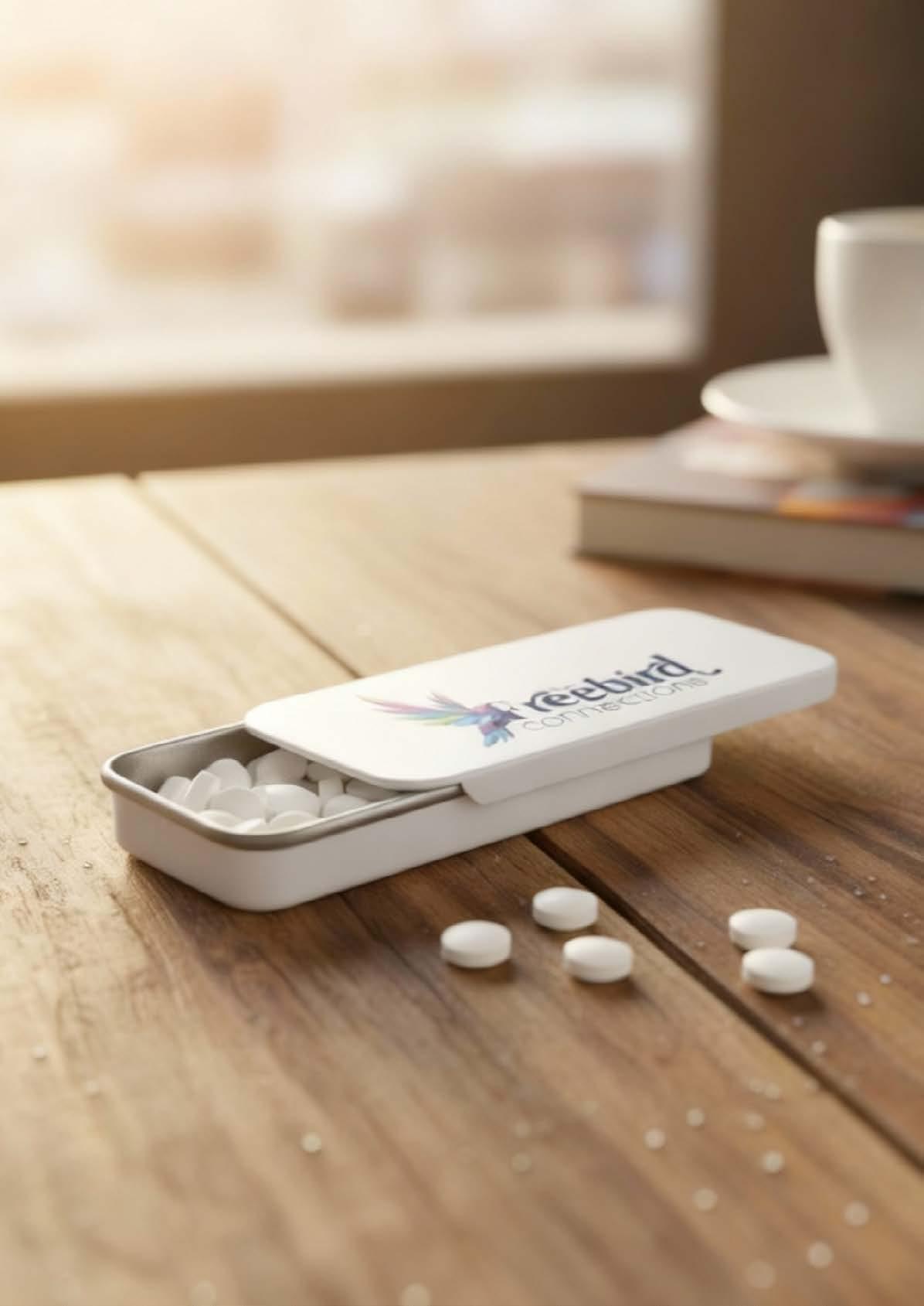 Njut av den uppiggande känslan av sockerfria pepparmints i en elegant burk med ett praktiskt skjutlock. Dessa små läckerheter är den perfekta uppiggaren. Skjut på locket och njut av en mintkänsla när som helst, var som helst. Fräschhet, bekvämlighet och smak sömlöst förpackade i en njutning i fickformat!