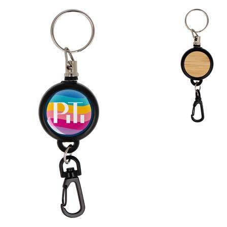 Nyckelbandet är tillverkat av slitstark bomullssnodd och har en säkerhetsspärr och metallklämma för säker fastsättning. Skjutreglaget i bambu underlättar justeringen samtidigt som det ger utrymme för varumärkesprofilering.