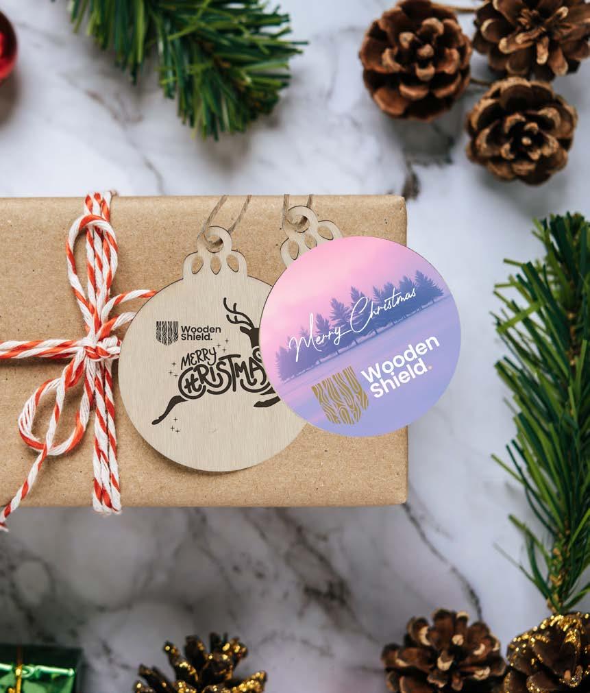 Fira säsongen med denna charmiga trädformade träprydnad. Den klassiska formen och det stora utrymmet gör den perfekt för profilering, för att skapa ett unikt minne för julen eller för att ge bort i present.