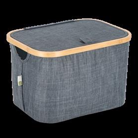 Keep your home tidy and stylish with the Sogne folding storage baskets from InSideOut. This Keep your home tidy and stylish with the Sogne storage baskets from InSideOut. Made from recycled textiles and bamboo, these durable baskets offer a practical and elegant solution for storing loose items. The modern design, convenient lid and sturdy handles make them perfect for any room. Thanks to the Velcro mechanism, the baskets are easily foldable and stackable, saving space when not in use. Add a touch of class to your interior and enjoy a tidy, stylish environment! A logo can be printed on the lid and on the front.