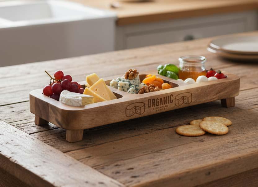 Dette snackbordet i akasietre fra InSideOut er perfekt til servering av nøtter, tapas eller ost. Snackbordet er 35 cm høyt og har forhåndsformede skåler – og blir en prydgjenstand på ethvert bord. Det FSC-sertifiserte akasietreet har en vakker, varm farge og er dessuten slitesterkt, vannbestandig og antibakterielt. En logo kan plasseres på kanten av bordet.
