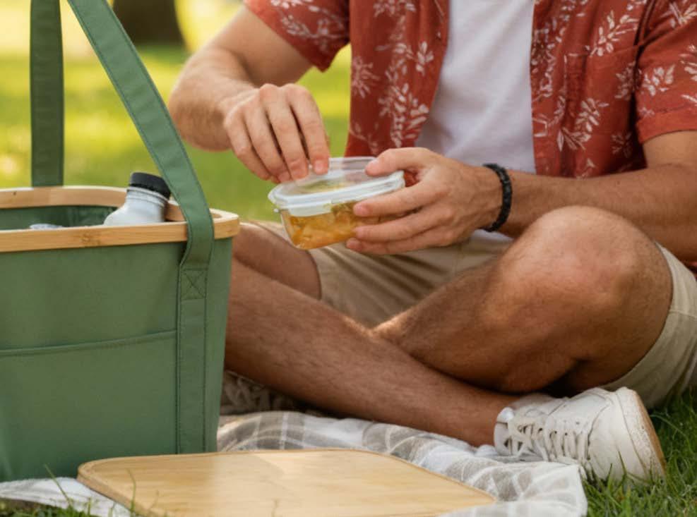 Den sammenleggbare (kjøle)kurven Sogne fra InSideOut er en bærekraftig, multifunksjonell kurv laget av resirkulerte materialer og bambus. Med en matchende, avtagbar og isolert kjølebag, et bambuslokk som kan brukes som skjærebrett og det sammenleggbare designet, er denne kurven perfekt for utendørsaktiviteter. Ideell for merkevarebygging og plassbesparelse.