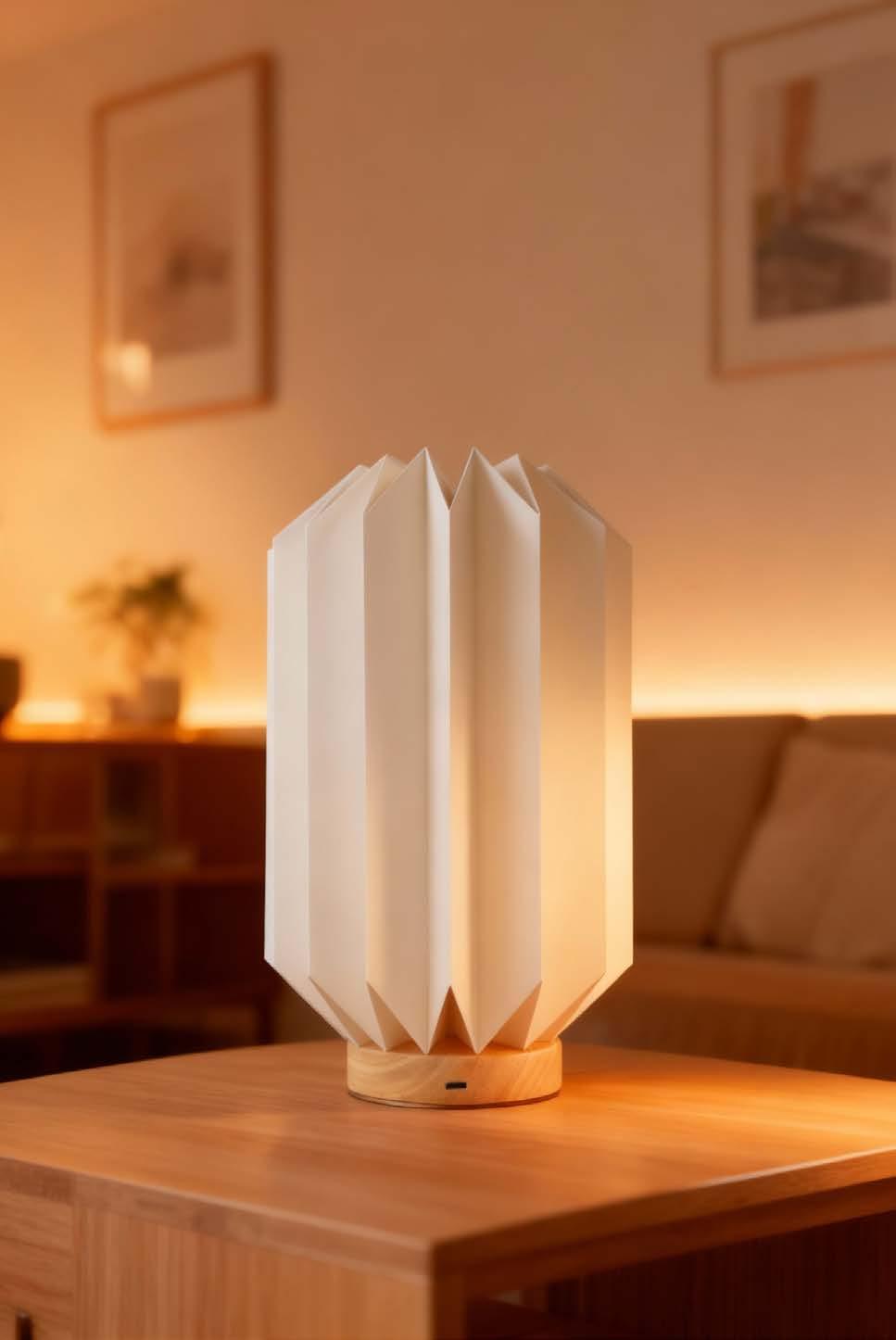 Lys opp rommet ditt med denne origami-inspirerte, sammenleggbare papirlampen fra Coollux. Den leveres kompakt og foldes ut til en stilig lampe med bare to enkle trinn. Med rene linjer kombinert med en trebase, passer inn i ethvert hjem. Lampen er ideell for minimalistisk eleganse og tilfører varme og stil. Drives av USB-C. Kabel inkludert (lader ikke inkludert).