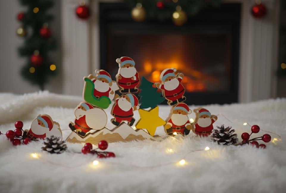 Bring juleglede inn i hjemmet med dette balansespillet i tre! Stable glade julenisser og juletrær på stativet uten å miste noe. Spillet byr på utfordringer for både store og små og sørger for koselige stunder med familien. Stativet kan merkes med logo.