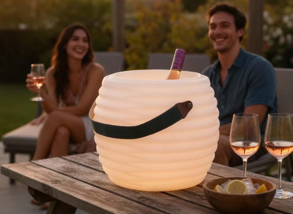 Nyt en drink, musikken og hverandres selskap på en mild sommerkveld eller inne når det er kaldt. I CoolLux Mini får man enkelt plass til en vinflaske eller fire bokser. Det passer lett en flaske vin eller 4 bokser. Båndet kan tilpasses.