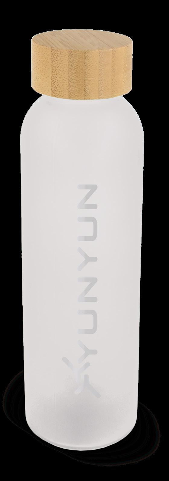Gjennomsiktig vannflaske med farget kork. Flasken er utstyrt med et bånd slik at du kan henge den rundt andre gjenstander, for eksempel ryggsekken. Størrelse: ø62x227mm. Innhold: 600ml
