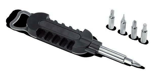 Práctico set de destornilladores para todas las tareas diarias dentro y alrededor de la casa u oficina. Este conjunto contiene las formas y tamaños de pedacitos más comunes. El destornillador también contiene un abridor de botellas, por lo que después de un duro día, puede tomarla para abrir una cerveza. Tamaño: 151x33x14mm