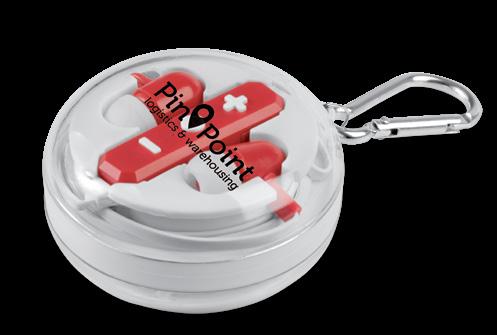 Langattomat korvanapit muovisessa neliön muotoisessa rasiassa läpinäkyvällä kannella. Hyvä pinta-ala merkkaukselle rasian kannessa. Toimitetaan latausjohdon kanssa. Koko: 61x61x20mm.