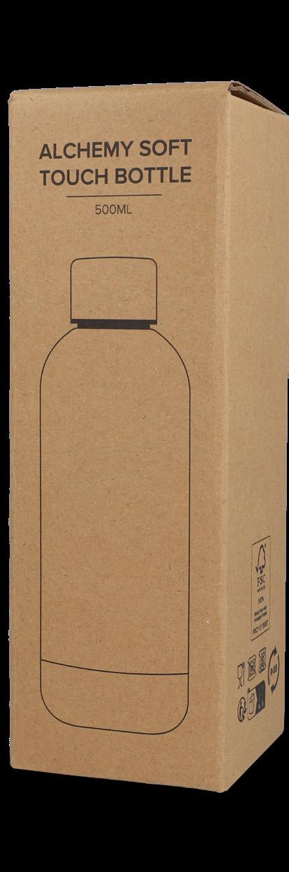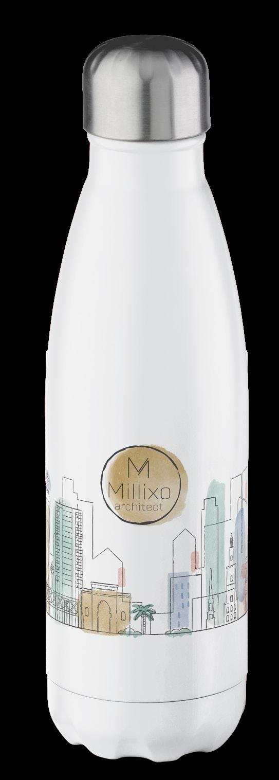 Doppelwandige vakuumisolierte Trinkflasche. Die 100% auslaufsichere Flasche wird in einer Geschenkverpackung geliefert. Die Vakuumisolation hält die Getränke länger auf der richtigen Temperatur, bis zu 12 Stunden warm und/oder bis zu 24 Stunden kalt. Die Pulverbeschichtung der Aussenwände verleiht der Flasche ein elegantes Aussehen.