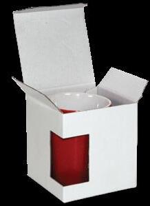 Ikkunallinen lahjapakkaus yhdelle mukille. Saatavana sinisenä (standardi) tai valkoisena. Koko: 100 x 110 x 100 mm