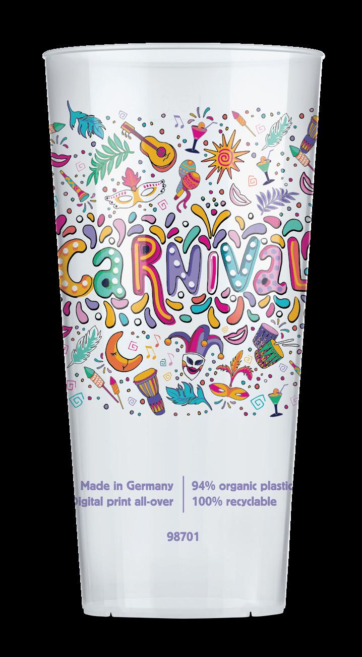 Gobelets réutilisables. L'alternative écologique aux gobelets jetables. Ces gobelets robustes et incassables sont empilables et fabriqués dans un plastique respectant les réglementations les plus strictes en matière de sécurité alimentaire. Ils sont 100% recyclables. Taille: ø 82 x 166 mm. Contenu: 500 ml