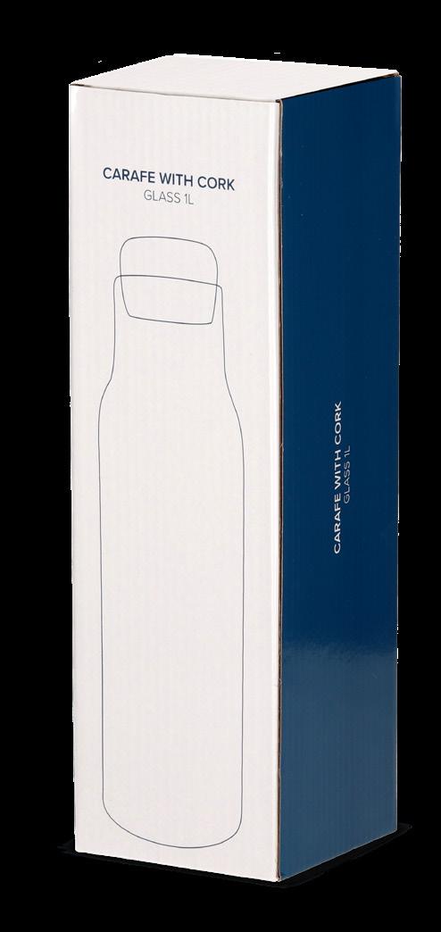 LT82833 | Karaf met kurken deksel 1L Fles van borosilicaatglas met een deksel van kurk. De combinatie van glas en kurk geeft de karaf een natuurlijke uitstraling. Serveer water, sappen of andere (koolzuurhoudende) dranken in deze fles. Dankzij de sluiting met deksel kan deze fles ook zonder problemen op het terras worden gebruikt. Afmeting: ø 85 x 290 mm. Inhoud: 1000 ml