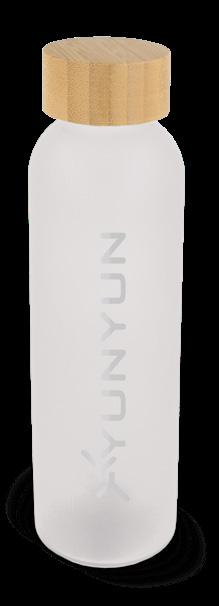 Glazen waterfles met sleeve. De fles zorgt er voor dat dranken langer koel blijven door middel van de custom-made sleeve er om heen. Inclusief een bandje aan de dop voor het eenvoudig vasthouden van de fles. Geschikt voor koude, koolzuurhoudende dranken. De sleeve is volledig te bedrukken met een full-colour bedrukking. Wordt geleverd in een geschenkverpakking. Afmeting: ø 68 x 225 mm. Inhoud: 500 ml