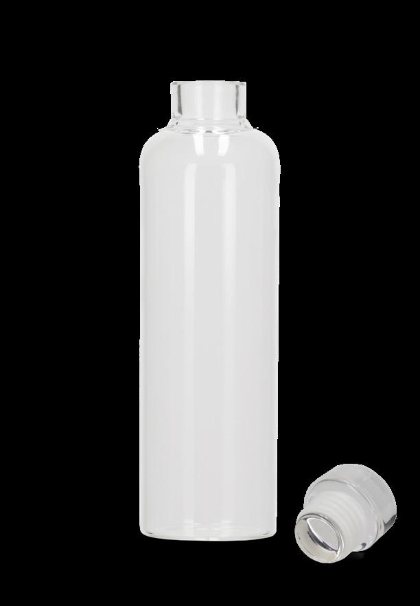 Vannflasken i glass har en kapasitet på 500 ml. Inkluderer en stropp på hetten slik at den lett kan bæres rundt. Passer til kalde, kullsyreholdige og ikke-kullsyreholdige drikker. Størrelse: ø 68 x 225 mm. Innhold: 500 ml