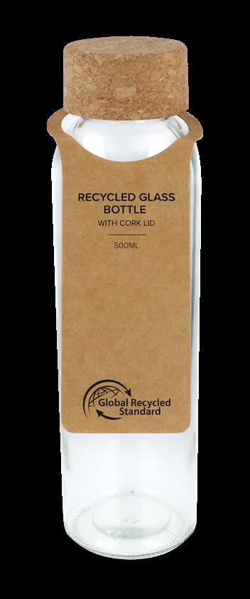 LT98870 | Resirkulert glassflaske med korklokk 500ml Denne flasken kombinerer funksjonalitet med et minimalistisk design, og har et naturlig korklokk. Størrelse: ø 65 x 245 mm. Innhold: 500 ml