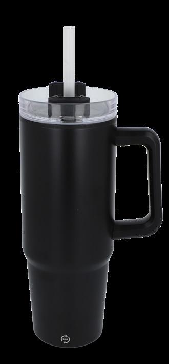 Vi introduserer "Avery", vår innovative R-PET drikkeflaske med et sammenleggbart sugerør i lokket. Størrelse: ø 66 x 240 mm. Innhold: 600 ml