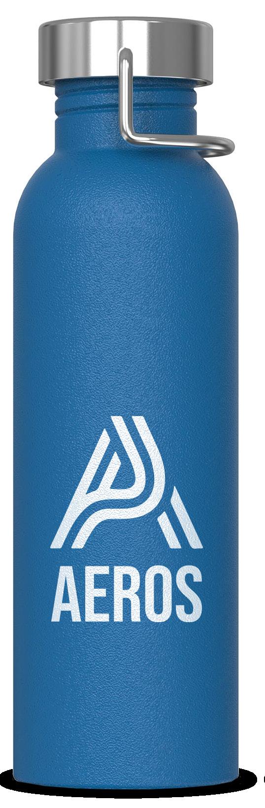 Vannflaske av rustfritt stål. Den 100 % lekkasjesikre flasken er pakket i en gaveeske. Flasken inneholder et pulverbelegg som gir en førsteklasses overflate. Passer til kalde, ikke-kullsyreholdige drikker. .