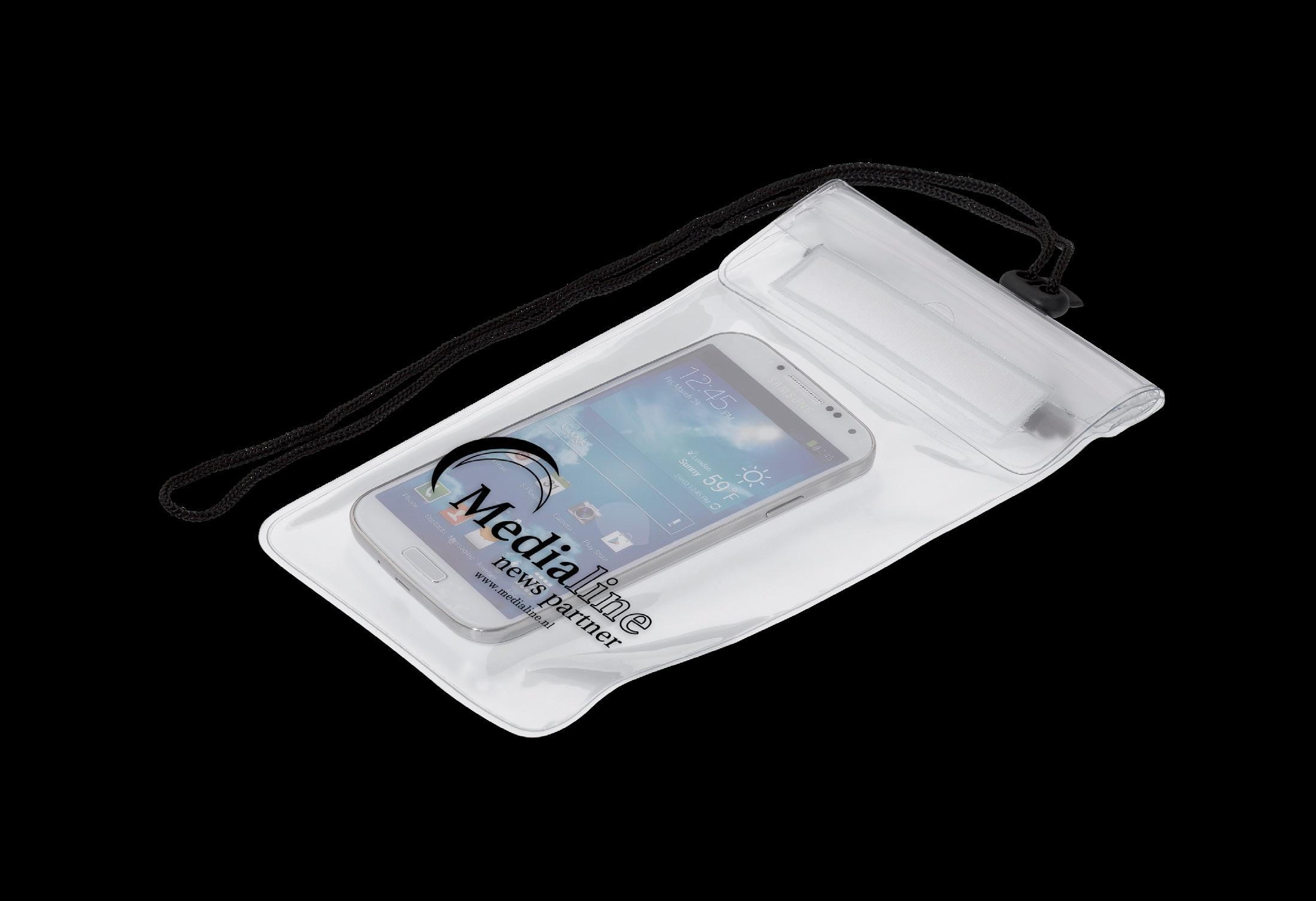 Wasserdichte Tasche für Smartphones oder Kameras. Auch zum Aufbewahren von Dokumenten oder Ausweisen während einer Reise geeignet. Inkl. Lanyard (L=120cm) , für fast alle Smartphones geeignet. Größe: 220 x 127 mm