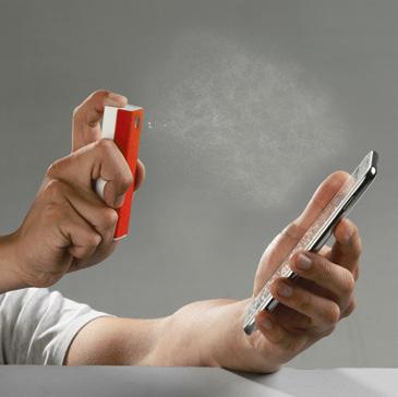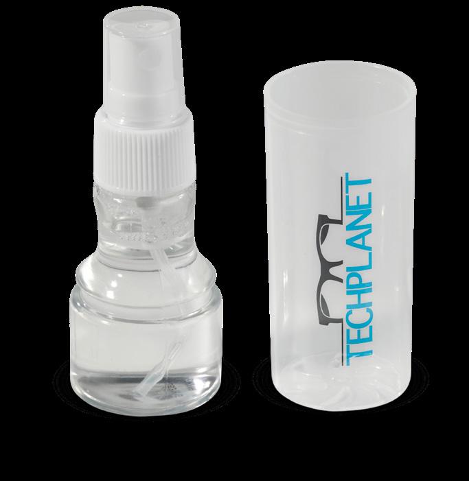 Reinigungsspray mit Mikrofasertuch in einem. Das Reinigungsspray kann zum Reinigen von Displays, Smartphones oder Brillen benutzt werden. Enthält 15 ml Reinigungsflüssigkeit. Größe: 20 x 20 x 95 mm