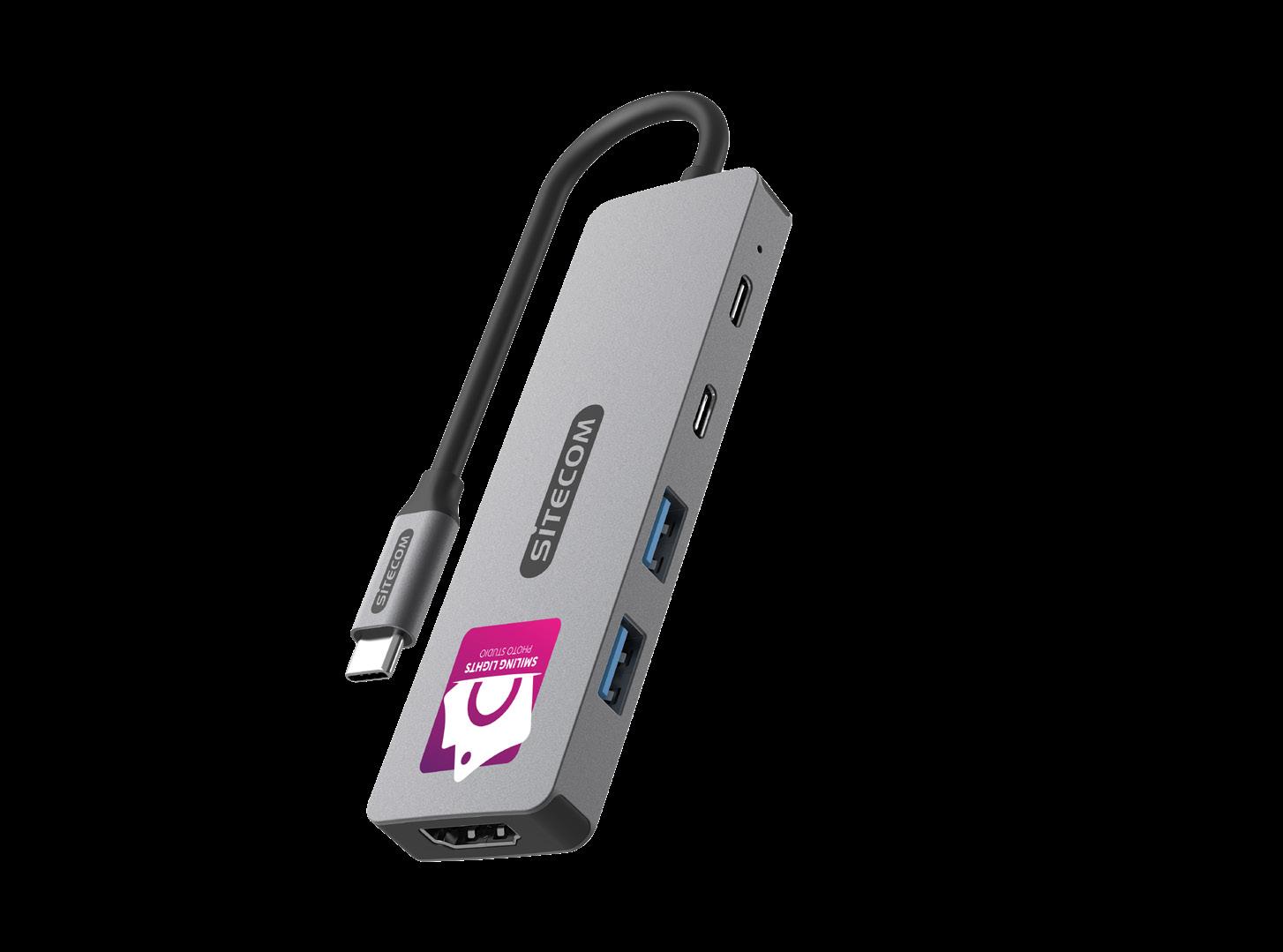 Verbinden Sie sie alle mit einem Hub! Unser PowerHub verfügt über einen USB-C-Flex-Anschluss mit einem kompakten grauen Hub mit USB-, USB-C- und einem HDMI-Anschluss. Mit dem PowerHub HDMI können Sie mehr aus Ihrem Notebook herausholen, z. B. einen Mehrfachbildschirm, indem Sie es einfach an Peripheriegeräte anschließen. Größe: 230 x 43 x 75 mm