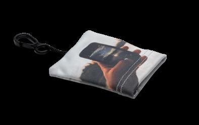 Mikrofaserbeutel 250g/m², zum Aufbewahren und Reinigen von Brillen. Der Beutel wird mit einem Verschlussband geschlossen. Vollfarbige und vollflächige Veredelung möglich. Größe: 180 x 90 mm