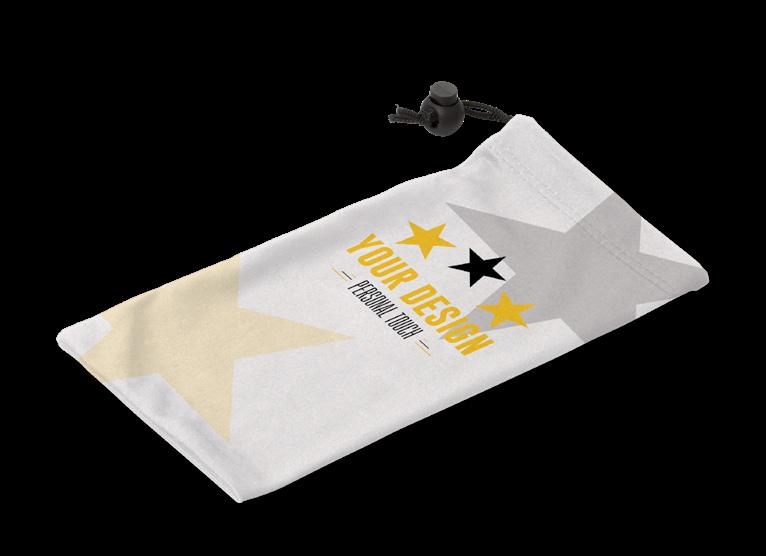 250g/m² microfiber cleaning pouch for glasses. The pouch can be closed with a cord and stopper. Full-colour and all-over imprint possible. Size: 180 x 90 mm