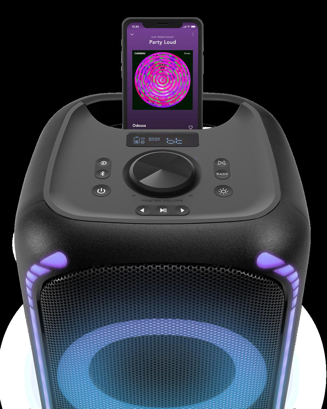 L’altoparlante Party Loud M è il cuore di ogni festa. I suoi bassi vibranti seguono la musica. Abbinatelo a un altro diffusore Party Loud M per raddoppiare il volume e scegliere tra 6 opzioni di illuminazione. Prestazioni potenti, 20 ore di riproduzione, potenziamento dei bassi, spettacolo di luci multicolore, impermeabile, varie opzioni di connessione via cavo. Dimensioni: 244 x 383 x 278 mm