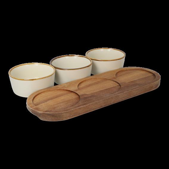 LT57207 | InSideOut Tavola da portata in legno con 3 ciotole in ceramica