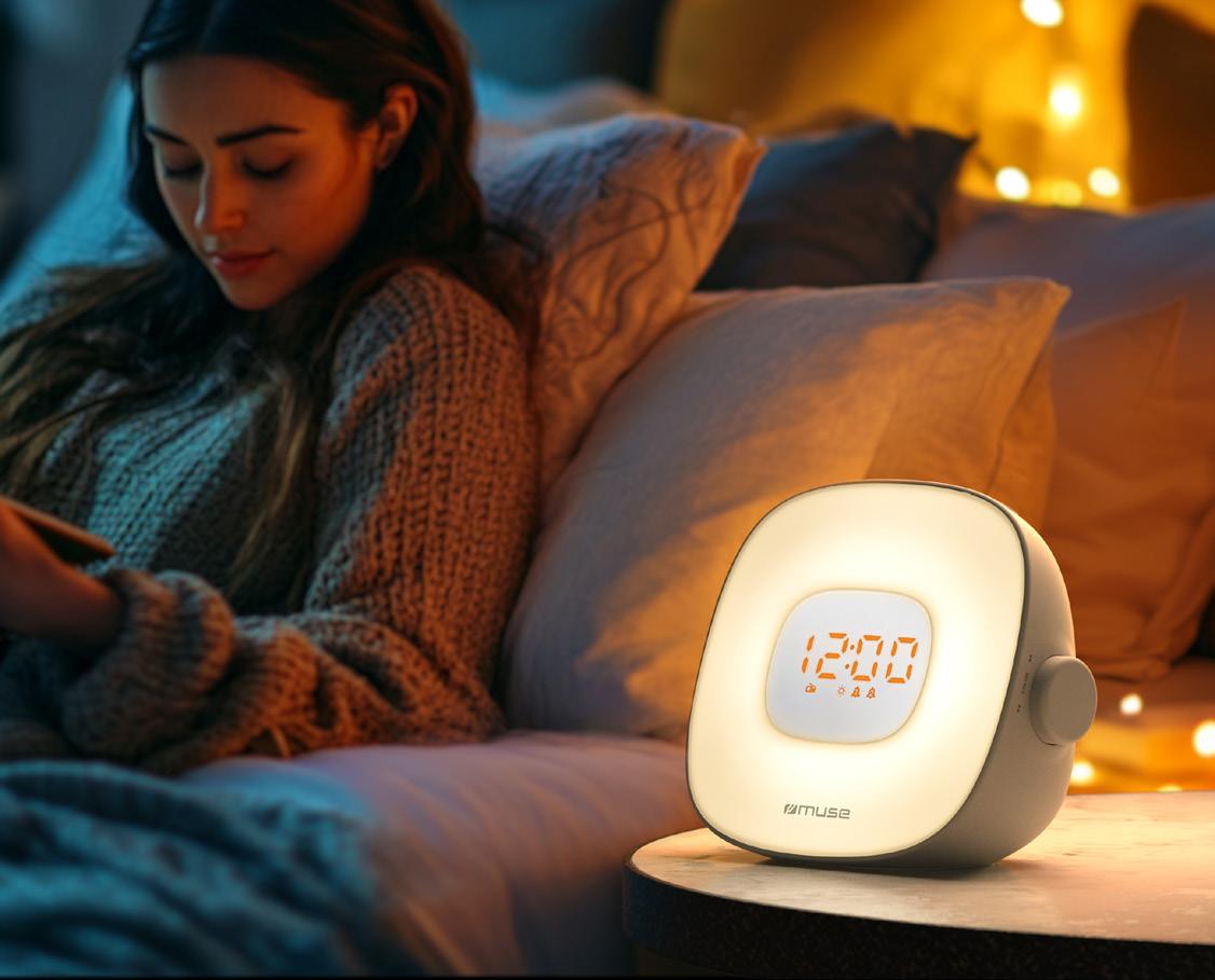 Do you ever have trouble waking up? Or falling asleep relaxed? The Muse Wake-up light helps you relax, sleep well and wake up energised. With the wake-up function, the light gradually gets stronger before your wake-up time; you wake up naturally. The alarm clock also helps you fall asleep relaxed. The alarm clock gradually reduces the light intensity. The Muse Wake-Up Light is equipped with an FM radio, so you can wake up to your favourite radio station.