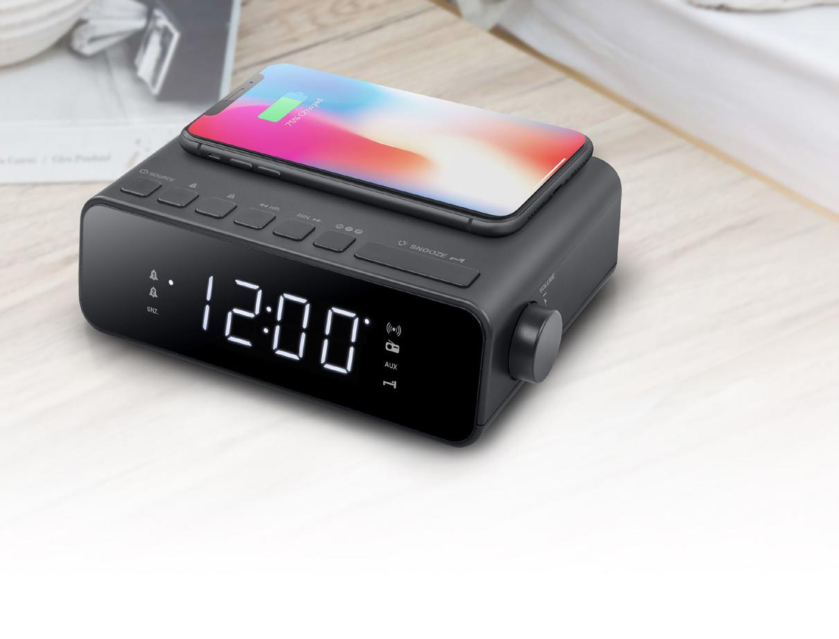 Tämä tyylikäs herätyskelloradio ja langaton laturi sopii täydellisesti mihin tahansa makuuhuoneeseen. Tässä herätyskellossa on myös USB-liitäntä. Kelloradiossa on AUX-liitäntä sekä himmennettävä LED-näyttö, kaksoishälytys ja tietenkin uni- ja torkkutoiminto.Koko: 120 x 45 x 70 mm