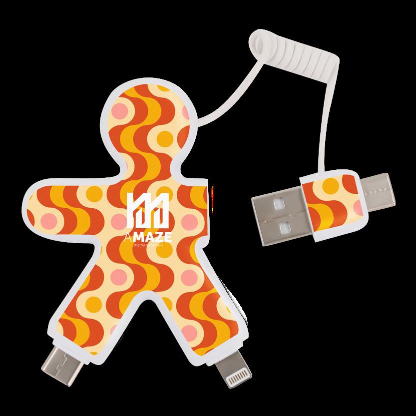 Verbinden Sie alle Ihre wichtigen Geräte mit den USB-, USB-C- oder Lightning-Anschlüssen. Das flexible Spiralkabel lässt sich auch als Schlüsselanhänger verwenden! Hergestellt aus recycelten Materialien. 30 % des Gesamtgewichts des Artikels sind aus recycelten Materialien hergestellt. Größe: 9 x 76 x 66 mm