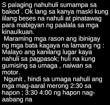 Rose : Sa palagay ninyo hindi kaya ito istorbo sa mga taong dumadaan dito? Sir Jun: Kailan man hind maging disturbo ang isang proyekto kung kapakanan ng mag-aaral ang maging beneficiary nito”