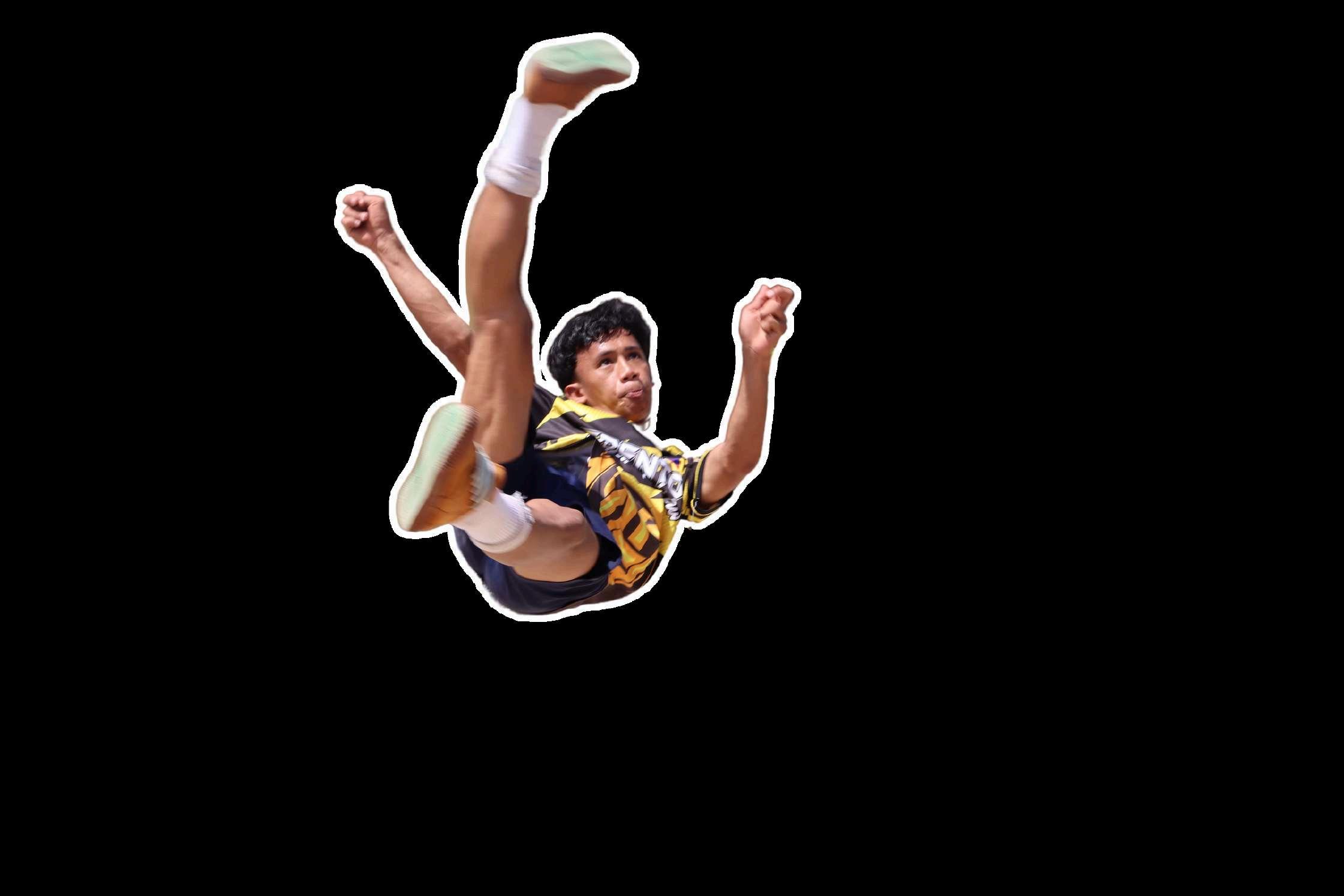ni John Carl Mendezabal sa larong Sepak Takraw laban sa San Roque,15-8 noong Municipal Meet sa Trento NHS,Oktubre 25,2024.