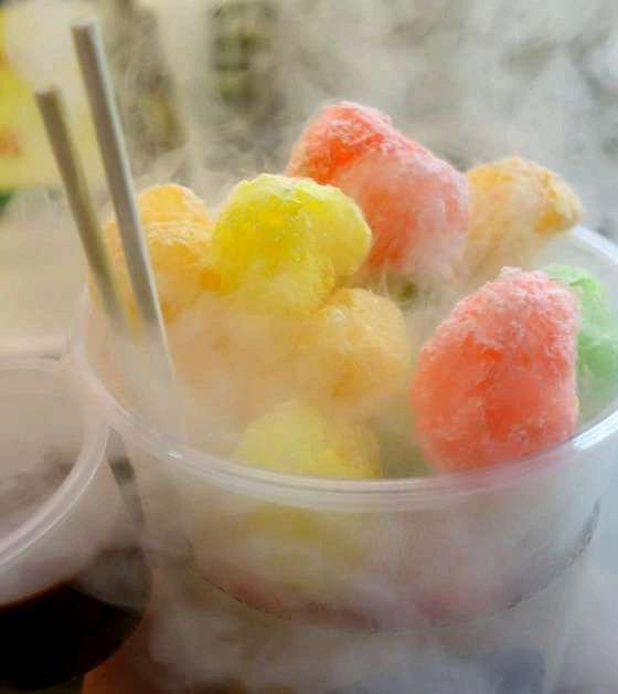 Ang mga "smoking balls," na mga malambot na cereal na pinasok ng liquid nitrogen, ay ibinebenta bilang Heaven's Breath at Nitro Puff. Ang Dragon's Breath ay ginagawa gamit ang makukulay na bola ng cereal na may lasa na katulad ng Froot Loops. Kapag nasa bibig ng kumakain, ang lamig ng liquid nitrogen ay nagsasanib sa init ng bibig, kaya't naglalabas