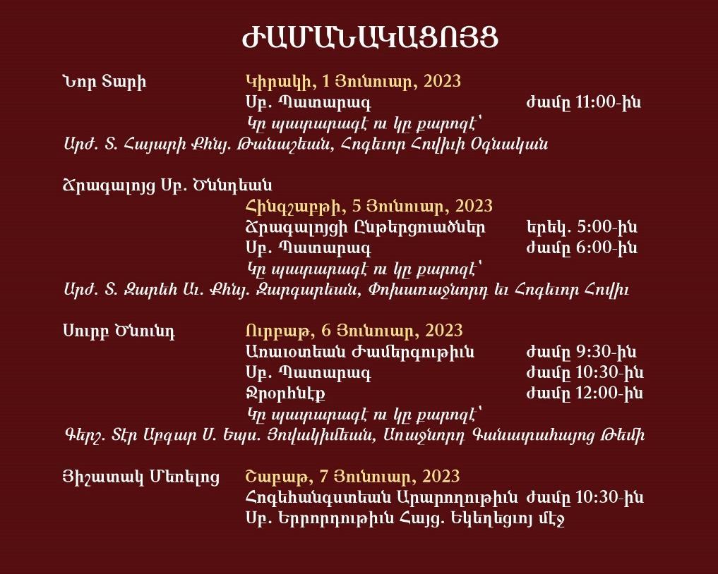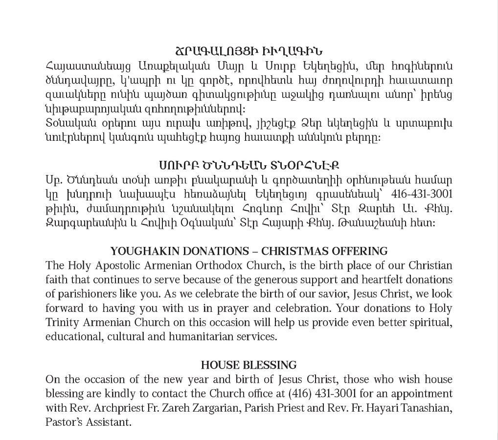ԴԵԿԵՄԲԵՐ 25 DECEMBER, 2022 – No. 175 ԿԻՐԱԿՆՕՐԵԱՅ ԹԵՐԹԻԿ - SUNDAY BULLETIN ՍԲ. ՍՏԵՓԱՆՈՍ ՆԱԽԱՎԿԱՅ
