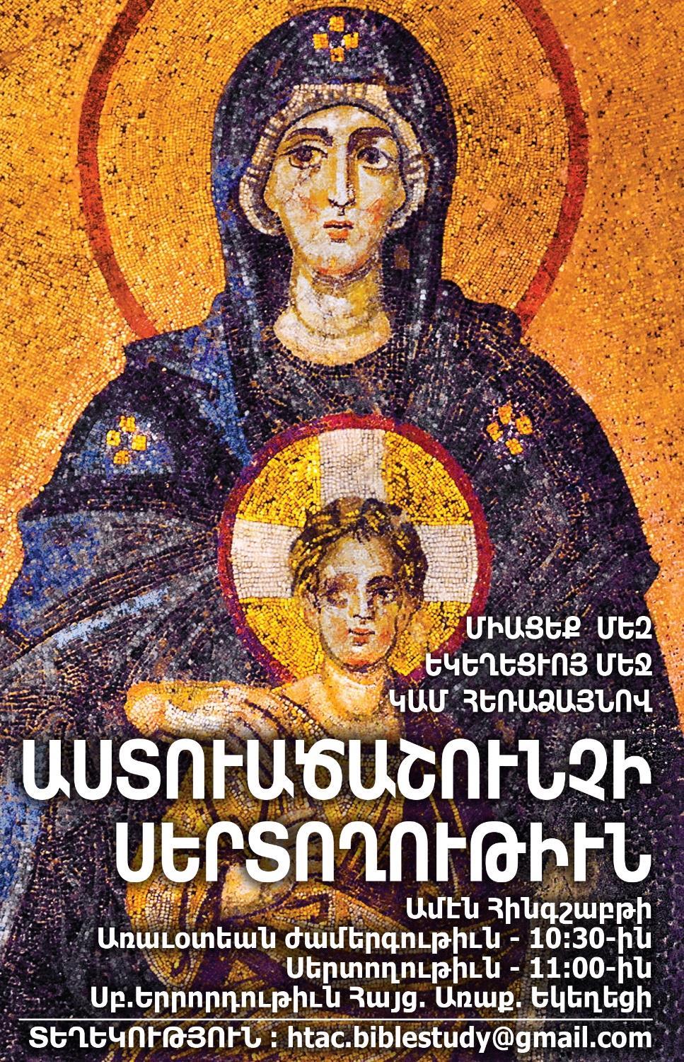 9 ՕԳՈՍՏՈՍ 13-ԻՆ Ս. ԱՍՏՈՒԱԾԱԾՆԱՅ ՏՕՆԻ ԱՌԻԹՈՎ ՏՕՆԵԼԻ ԱՆՈՒՆՆԵՐ Յաւարտ ս. պատարագի սիրով կը հրաւիրենք ներքոյիշեալ անունները կրող մեր քոյրերը ստանալու Աստուծոյ օրհնութիւնը: ՄԱՐԻԱՄ, ՄԱՐԻ