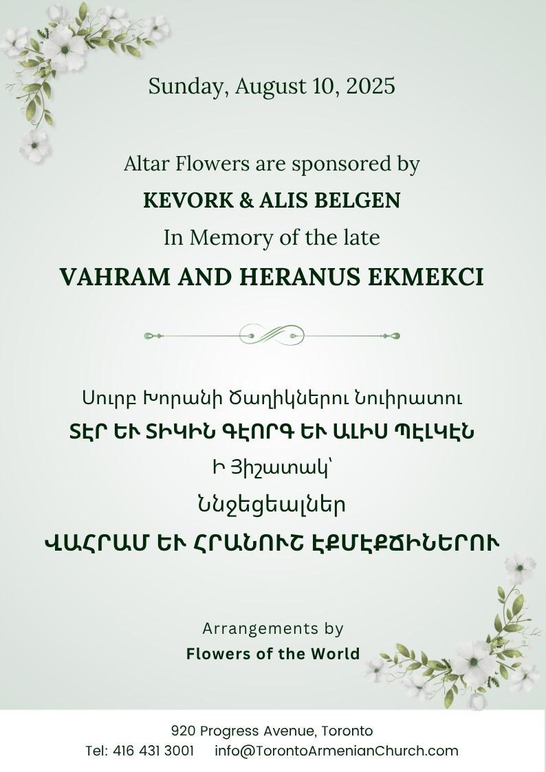 We thank all our donors for supporting Holy Trinity Armenian Church through their heartfelt donations. If you prefer to stay anonymous, please contact the Church office and inform the administration.