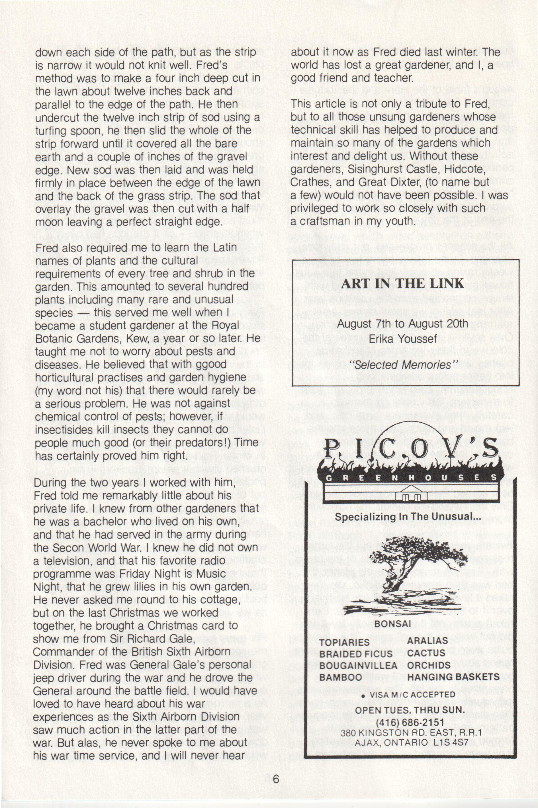 e Annual subscription to members newsletter e Free borrowing privileges from one of e Discounts on courses, lectures Canada s largest horticultural libraries and workshops * Discount on Soil Testing Service