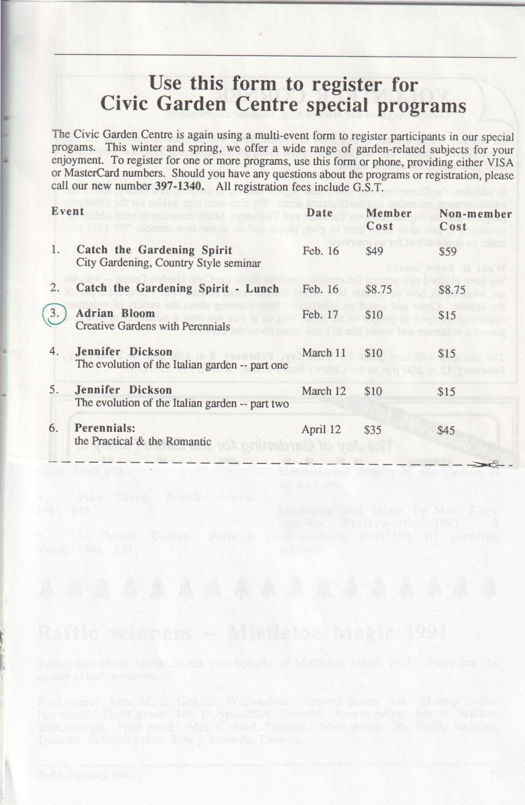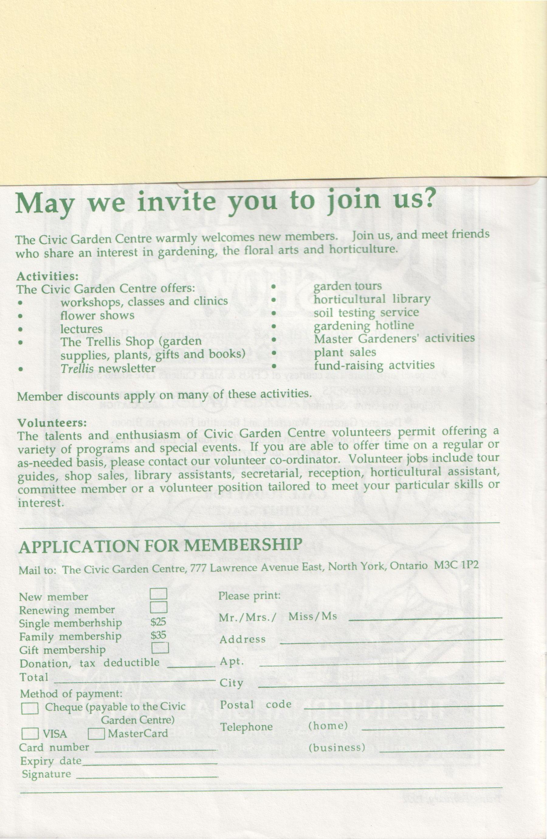 Mail to: The Civic Garden Centre, 777 Lawrence Avenue East, North York, Ontario M3C 1P2