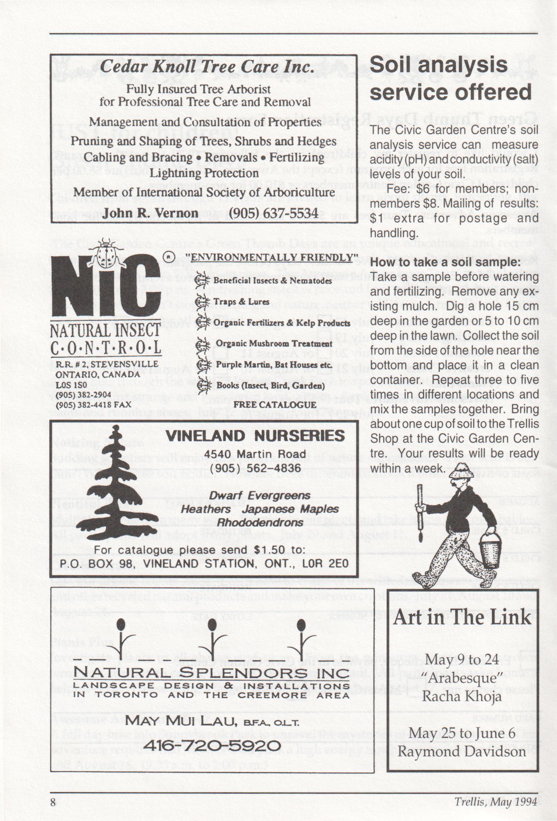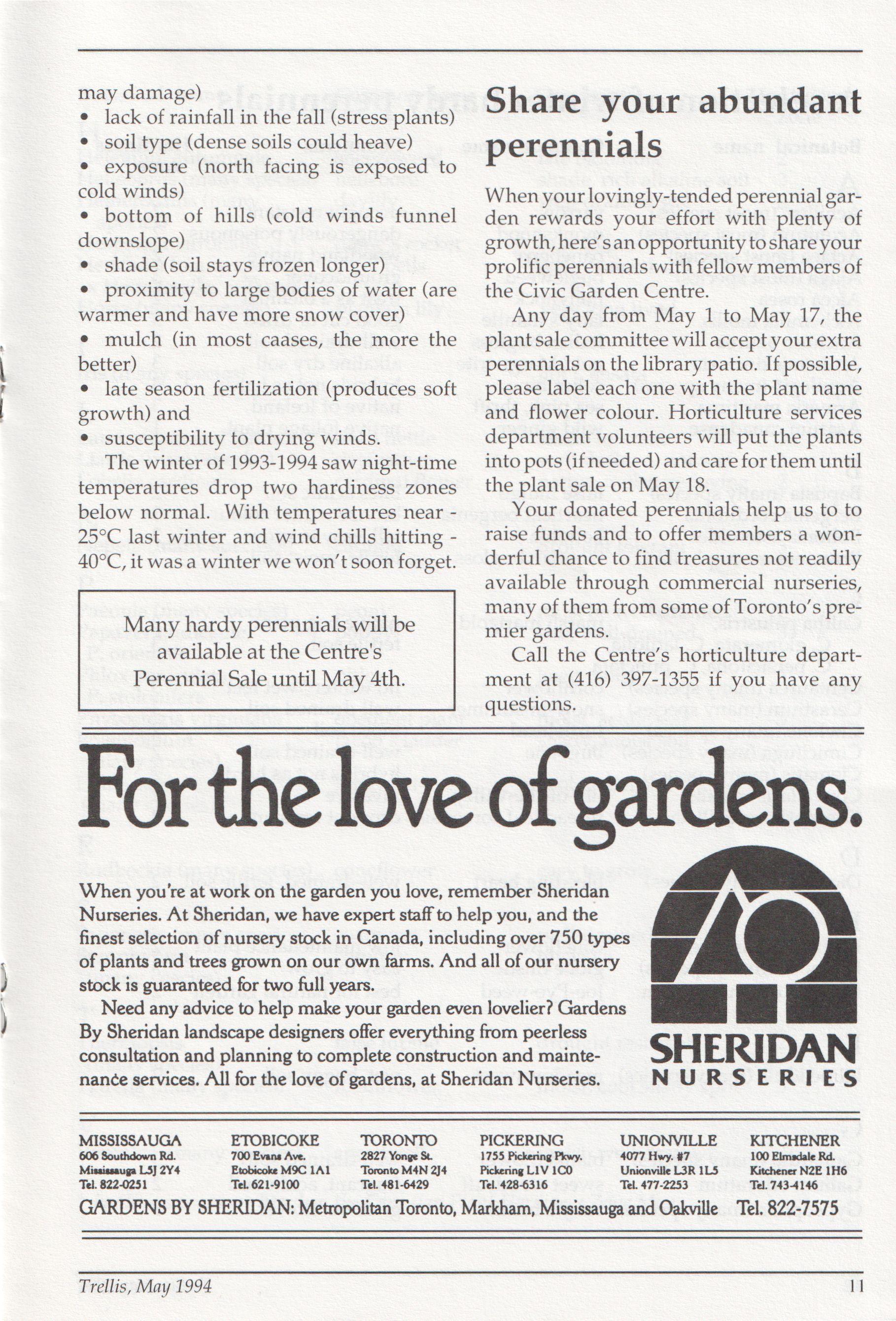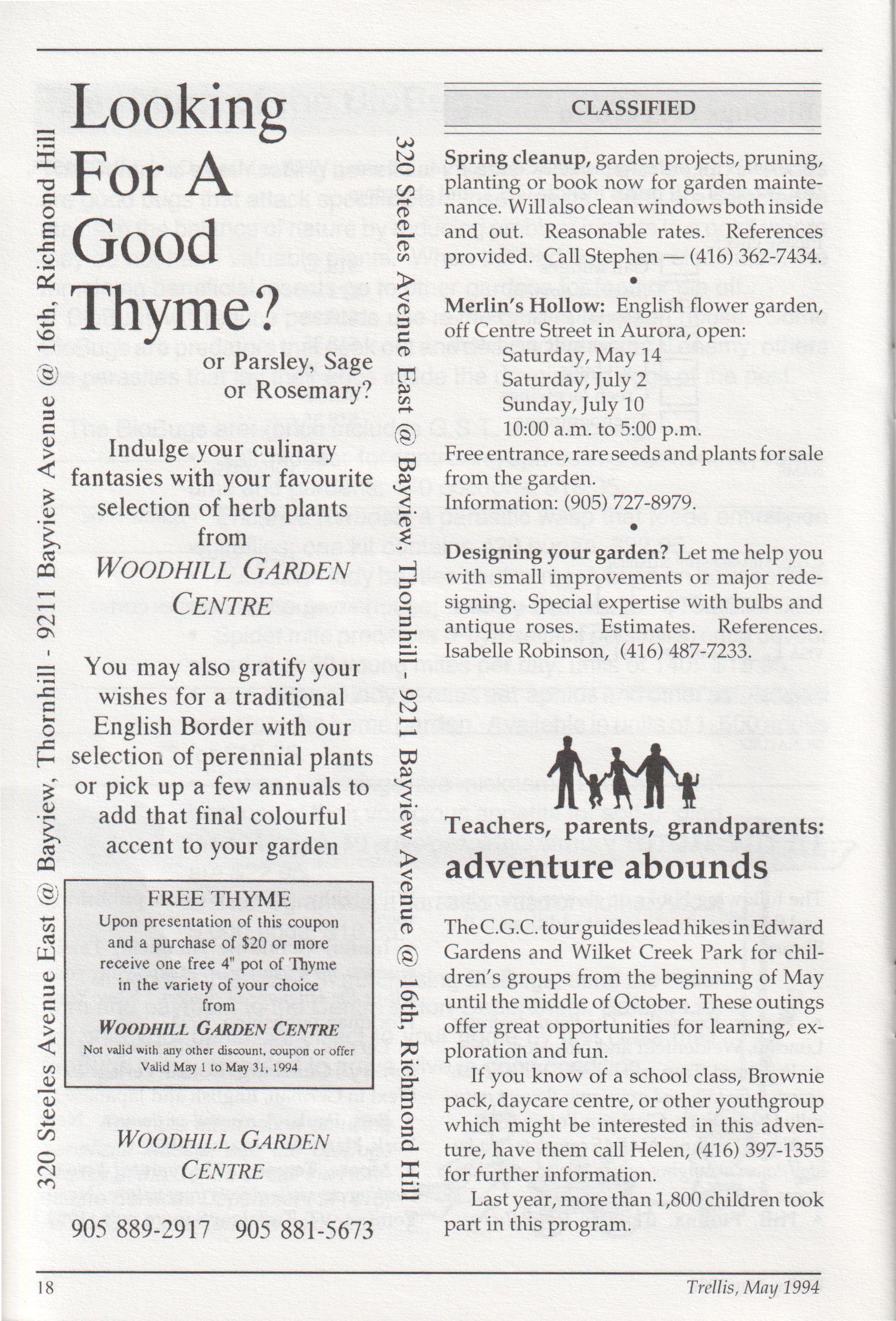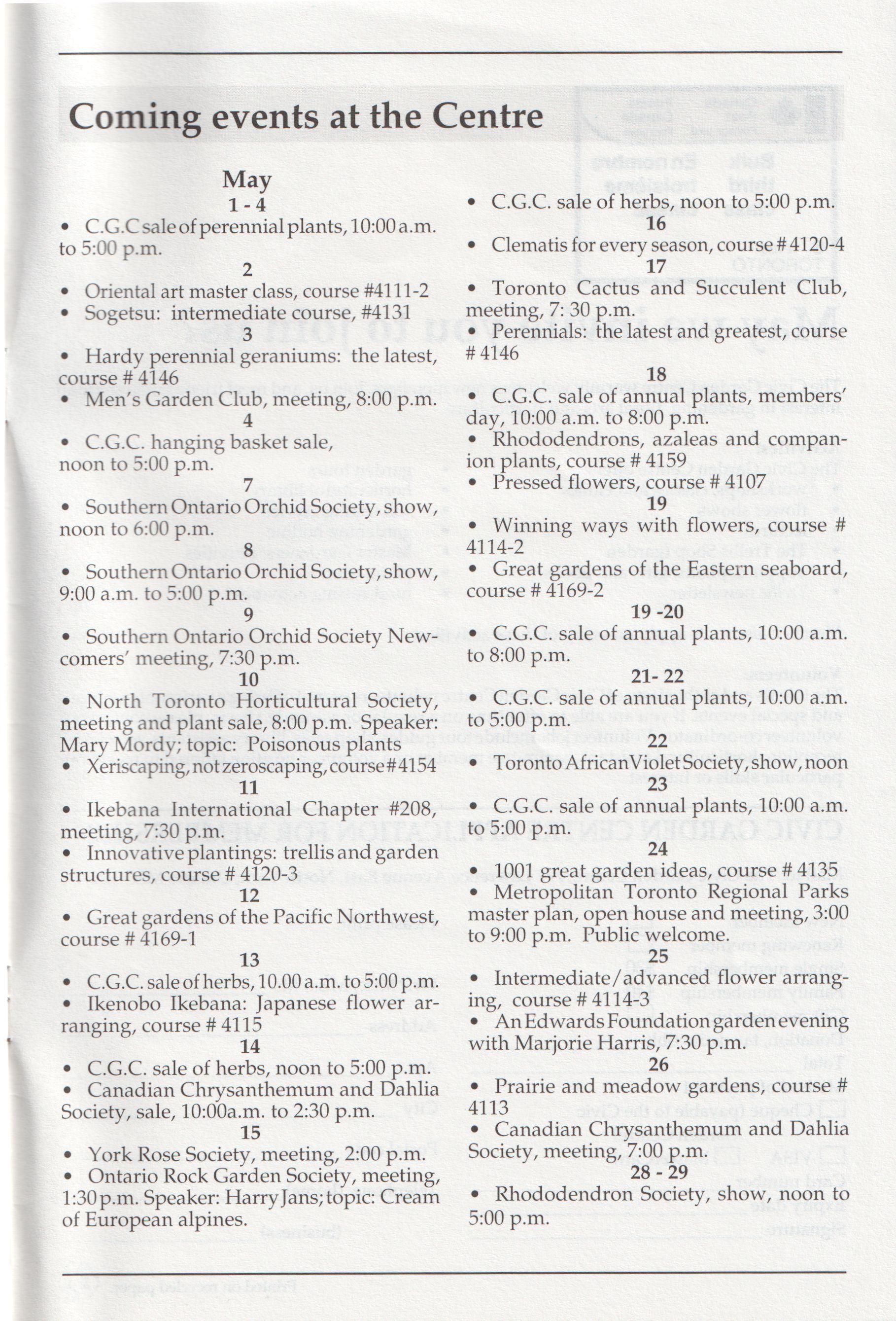 The newsletter of the Civic Garden Centre in Metropolitan Toronto May, 1994
