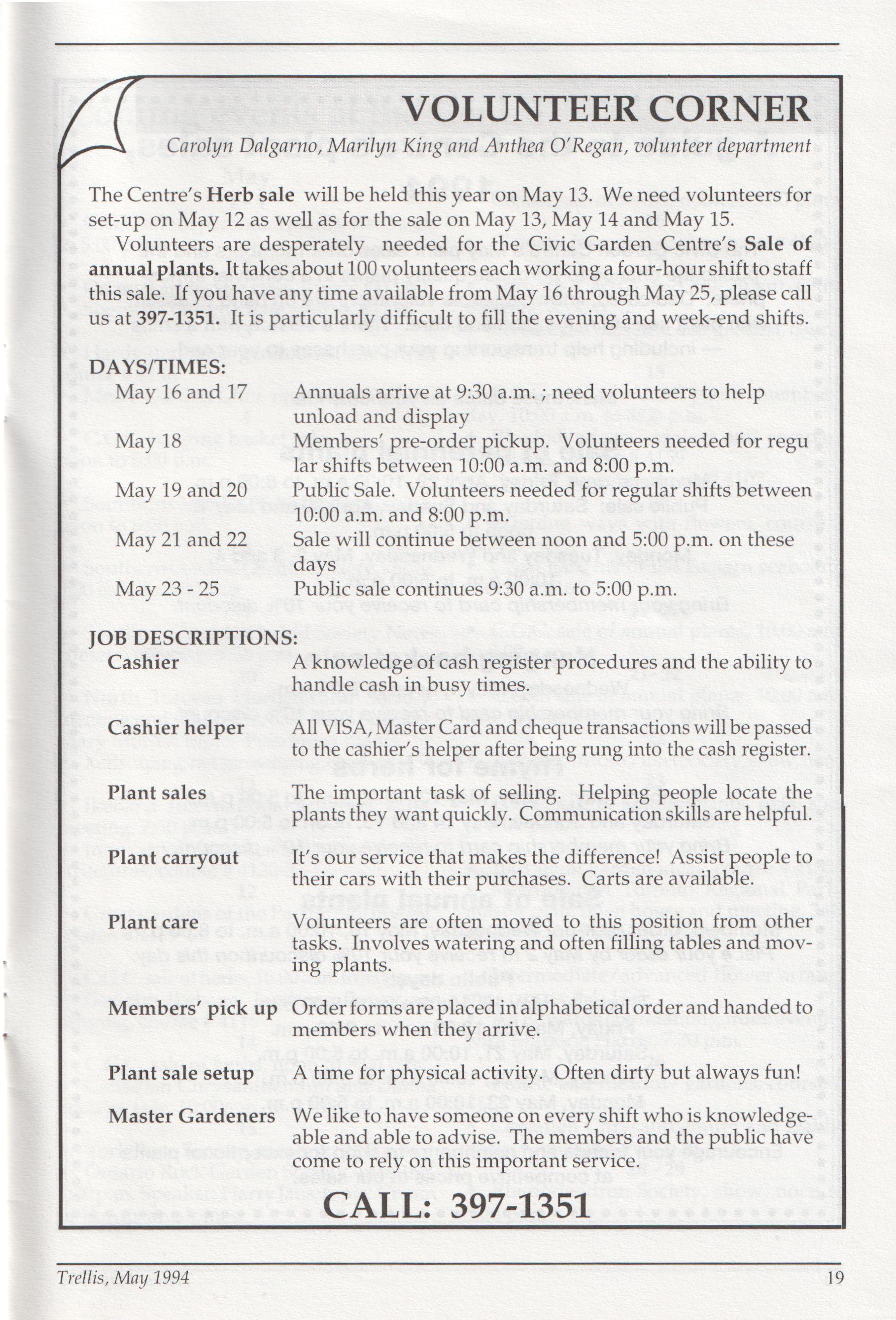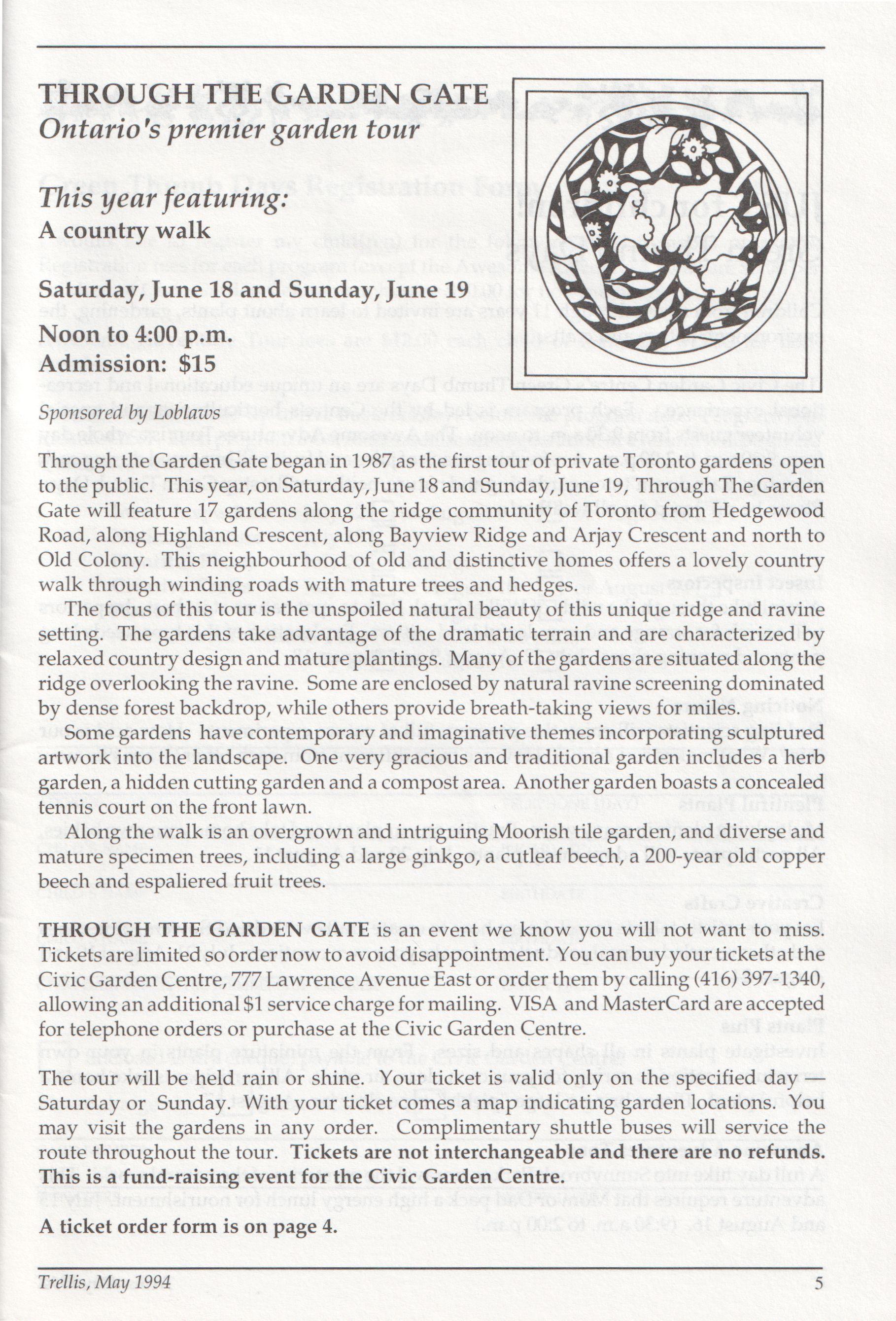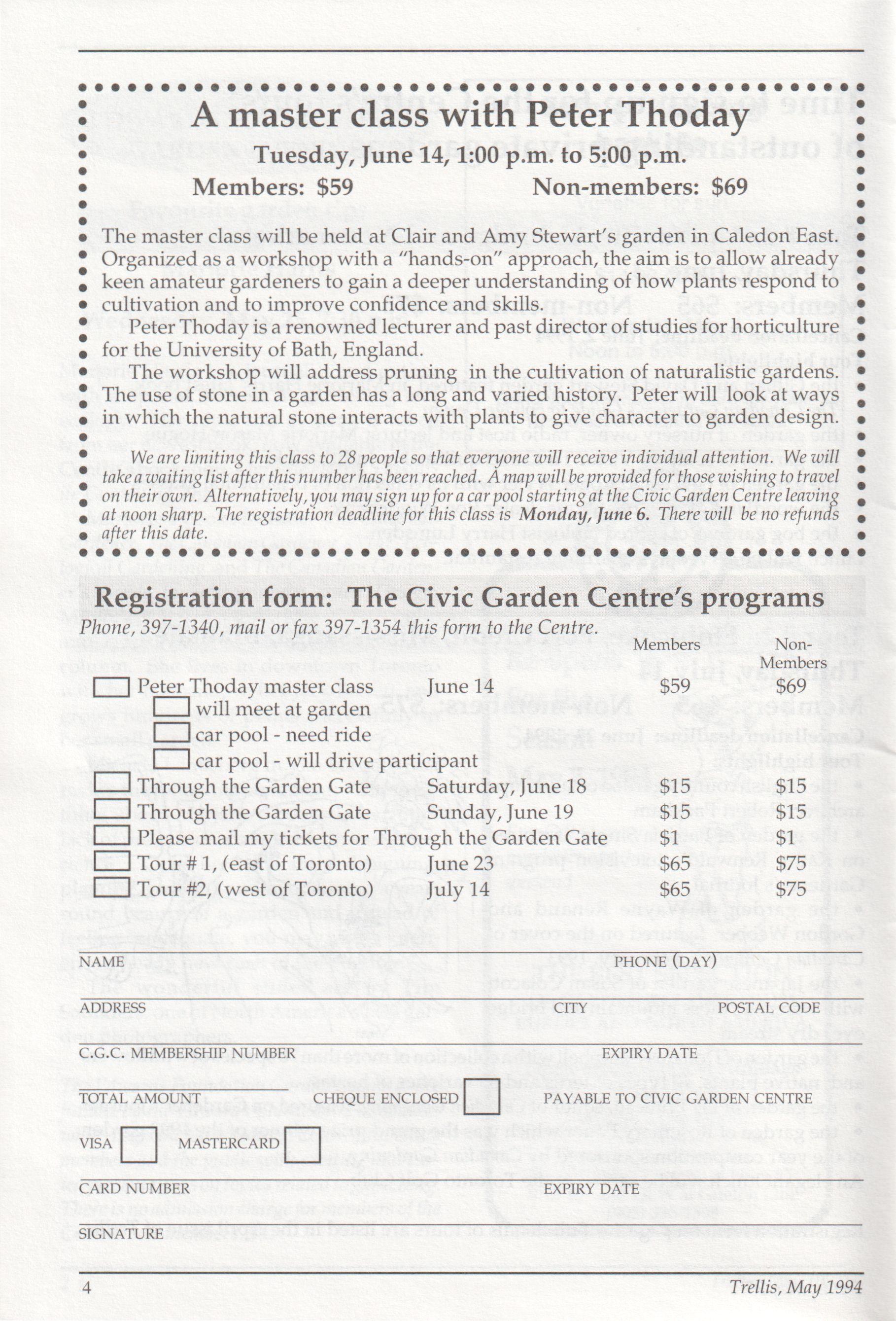 The newsletter of the Civic Garden Centre in Metropolitan Toronto May, 1994