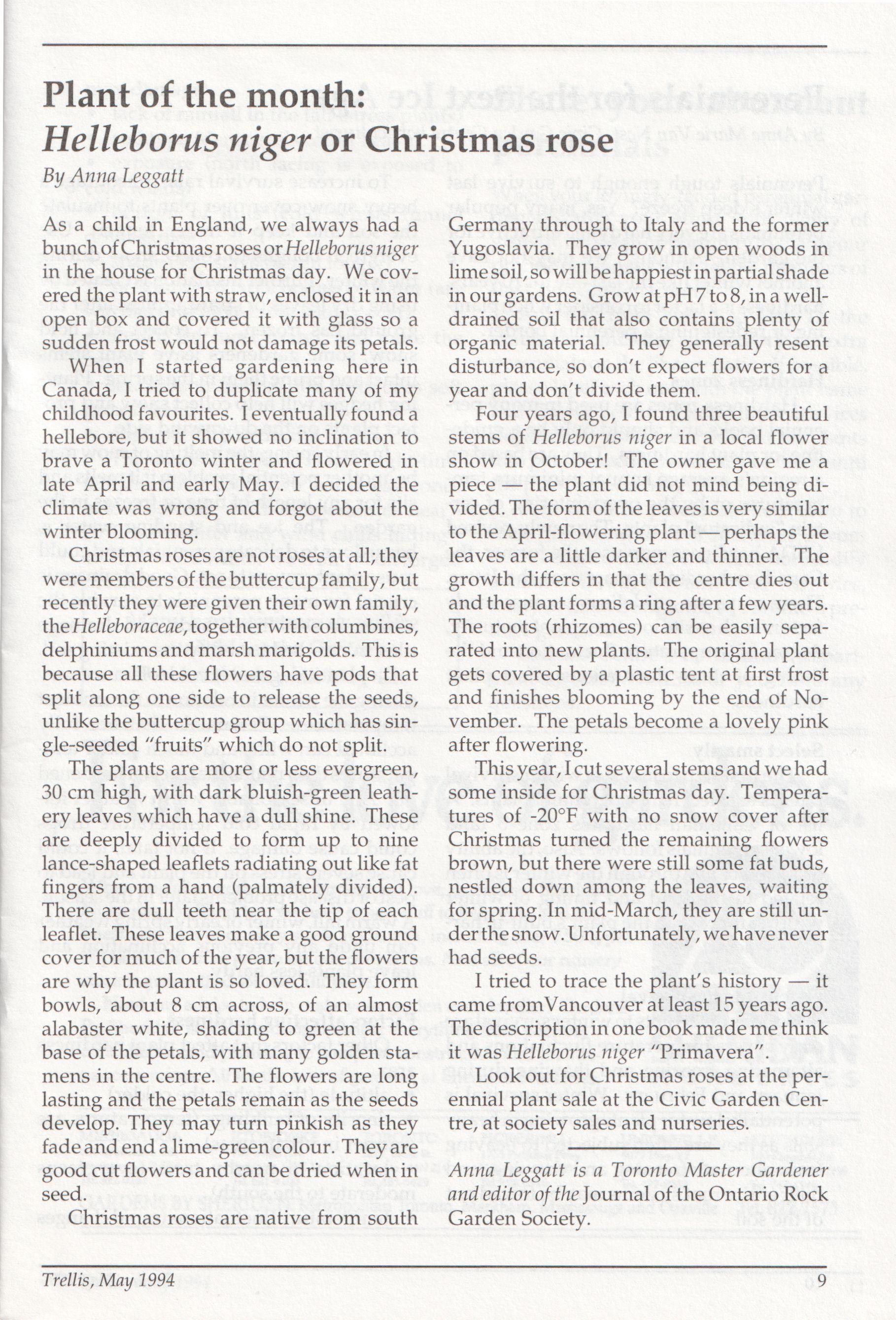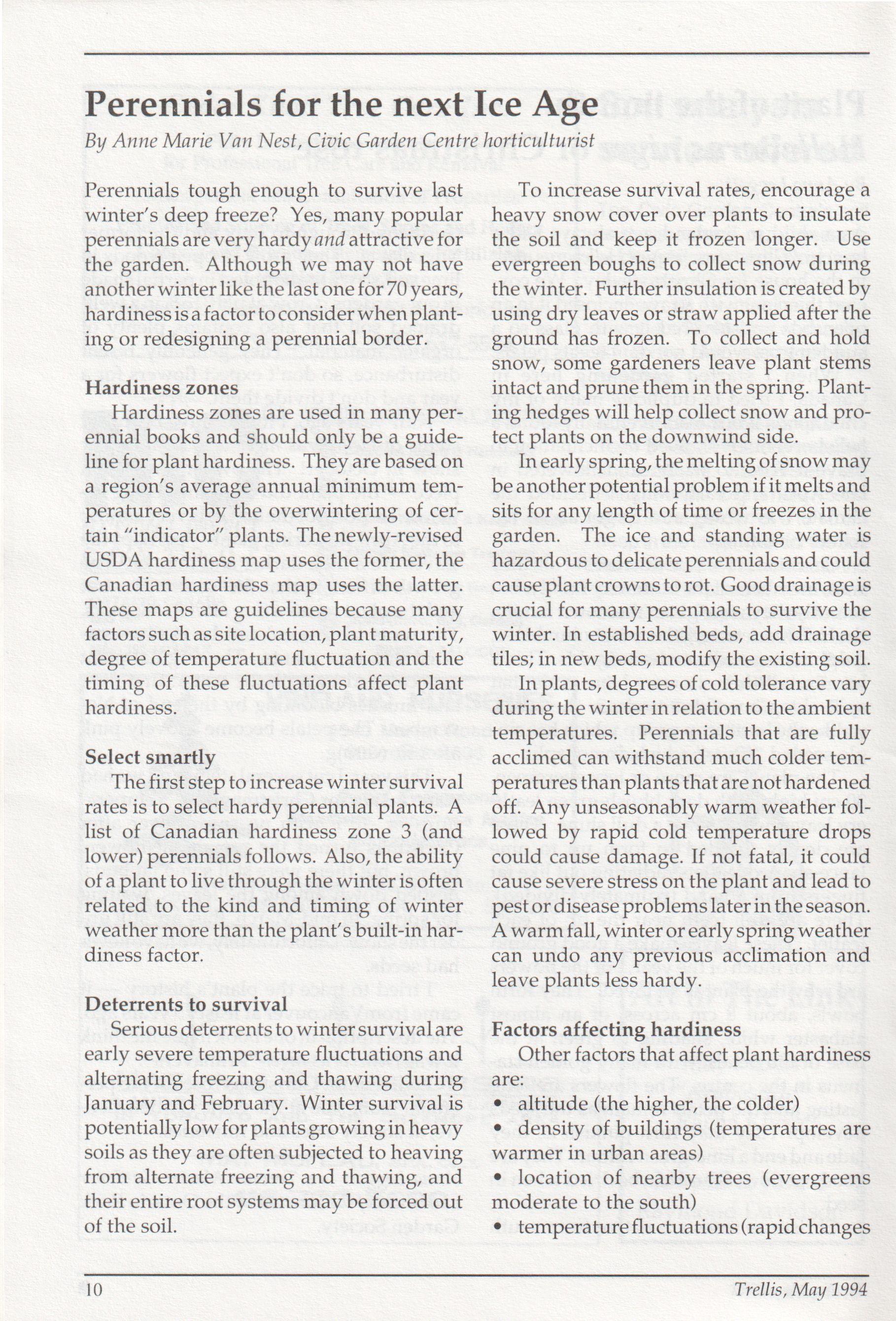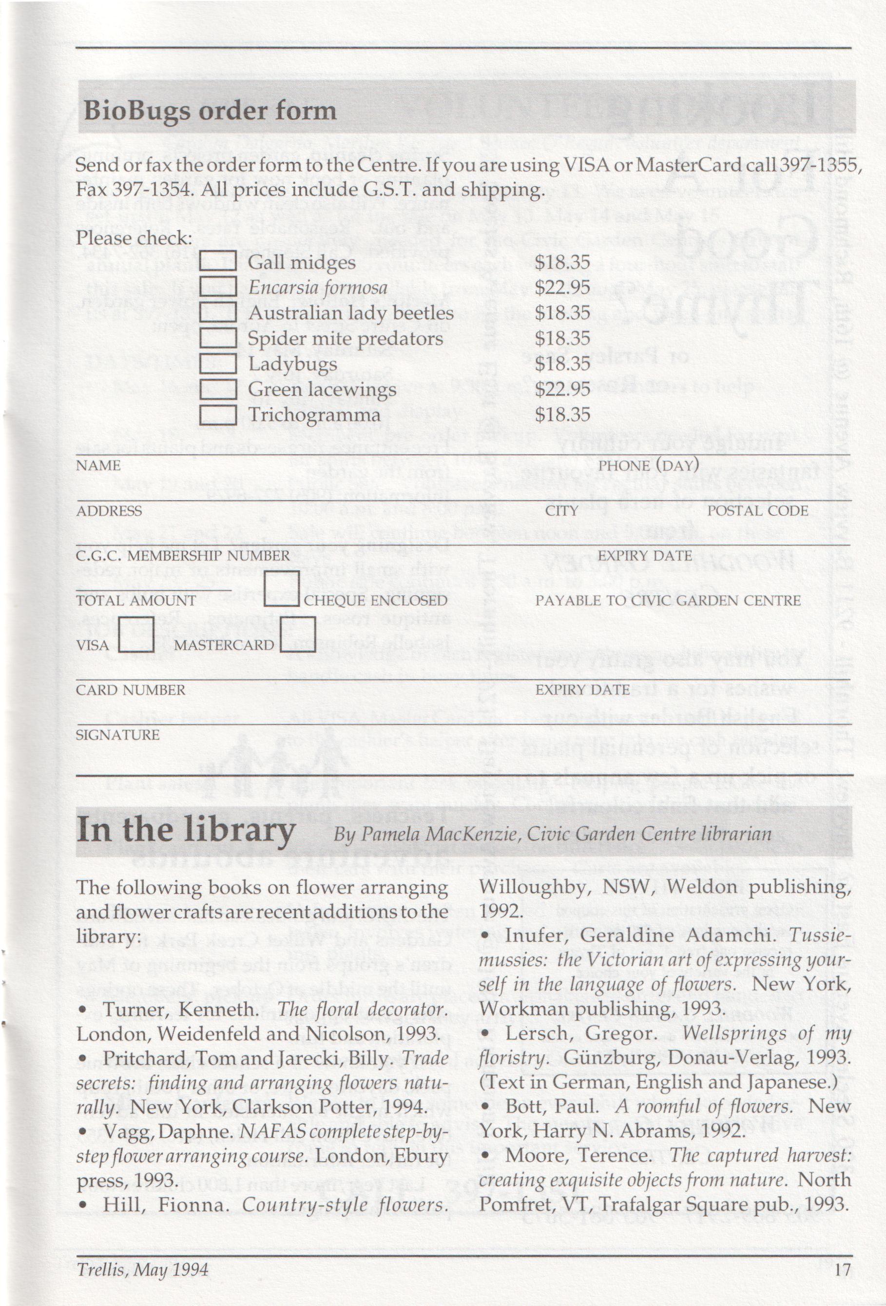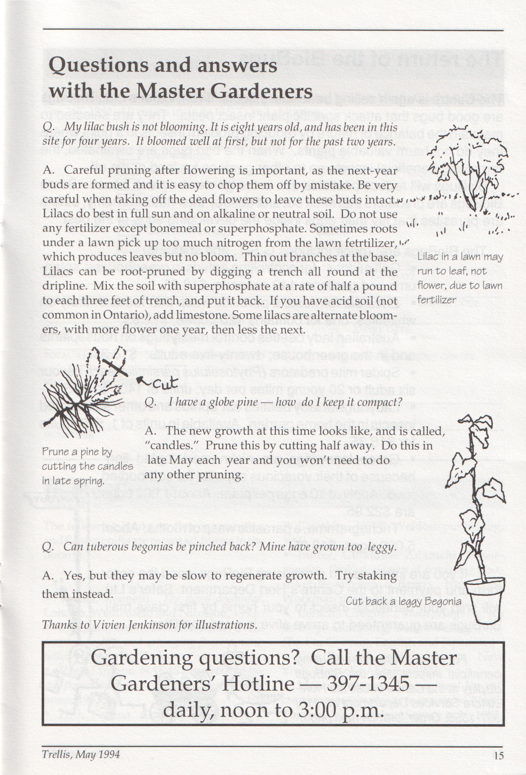 The newsletter of the Civic Garden Centre in Metropolitan Toronto May, 1994
