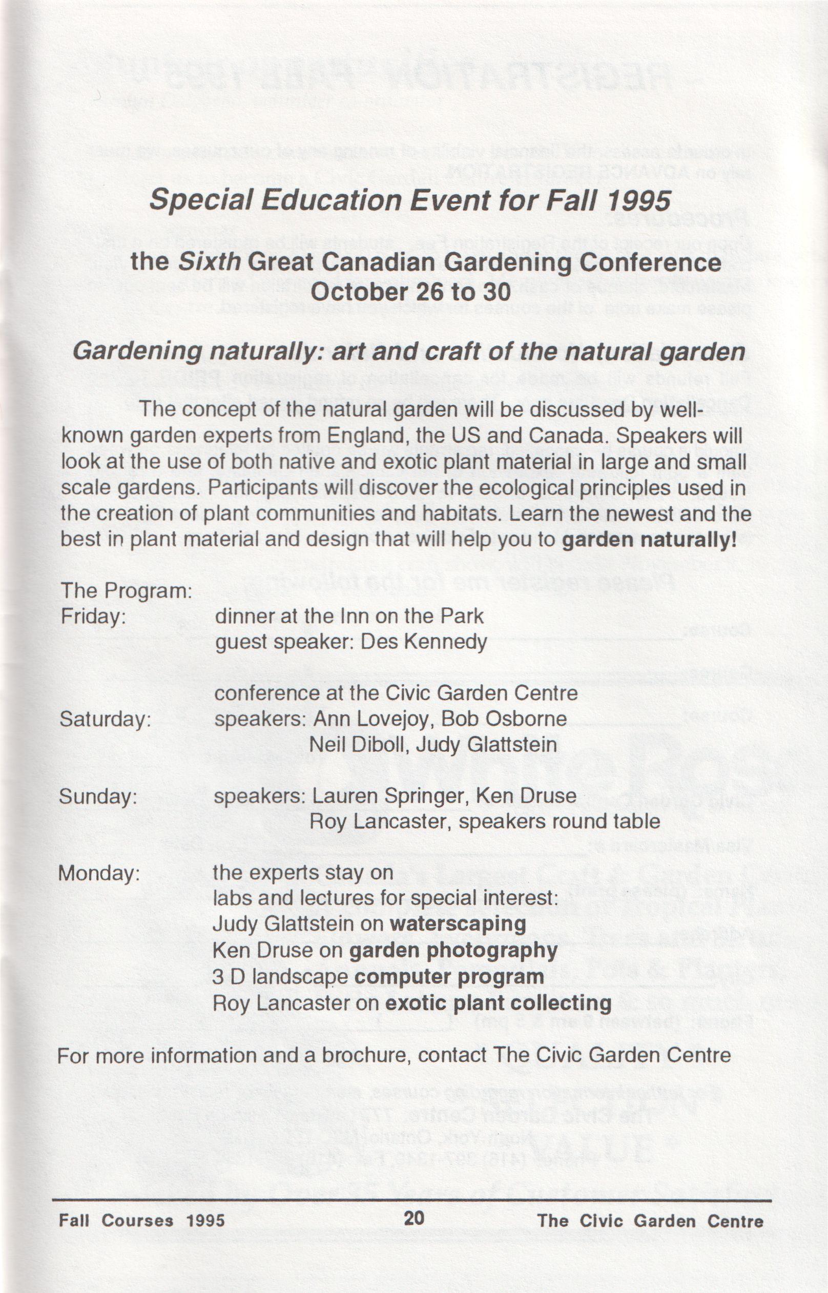 the Sixth Great Canadian Gardening Conference