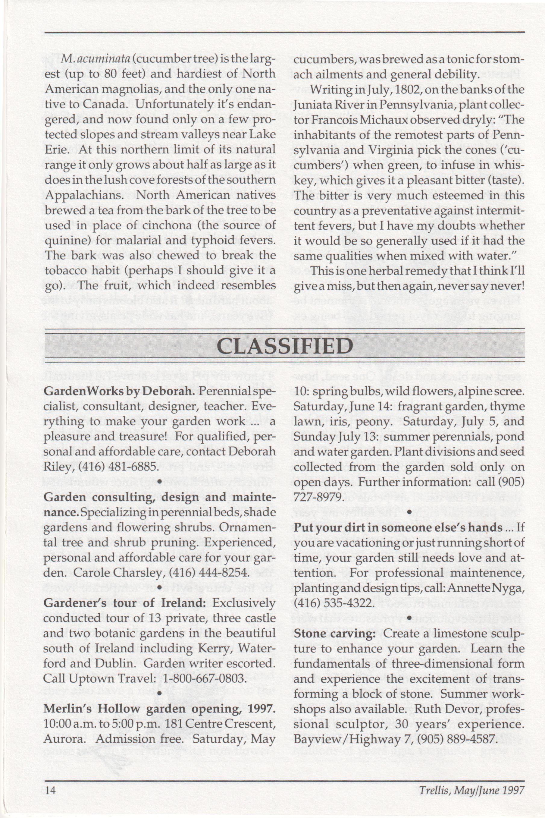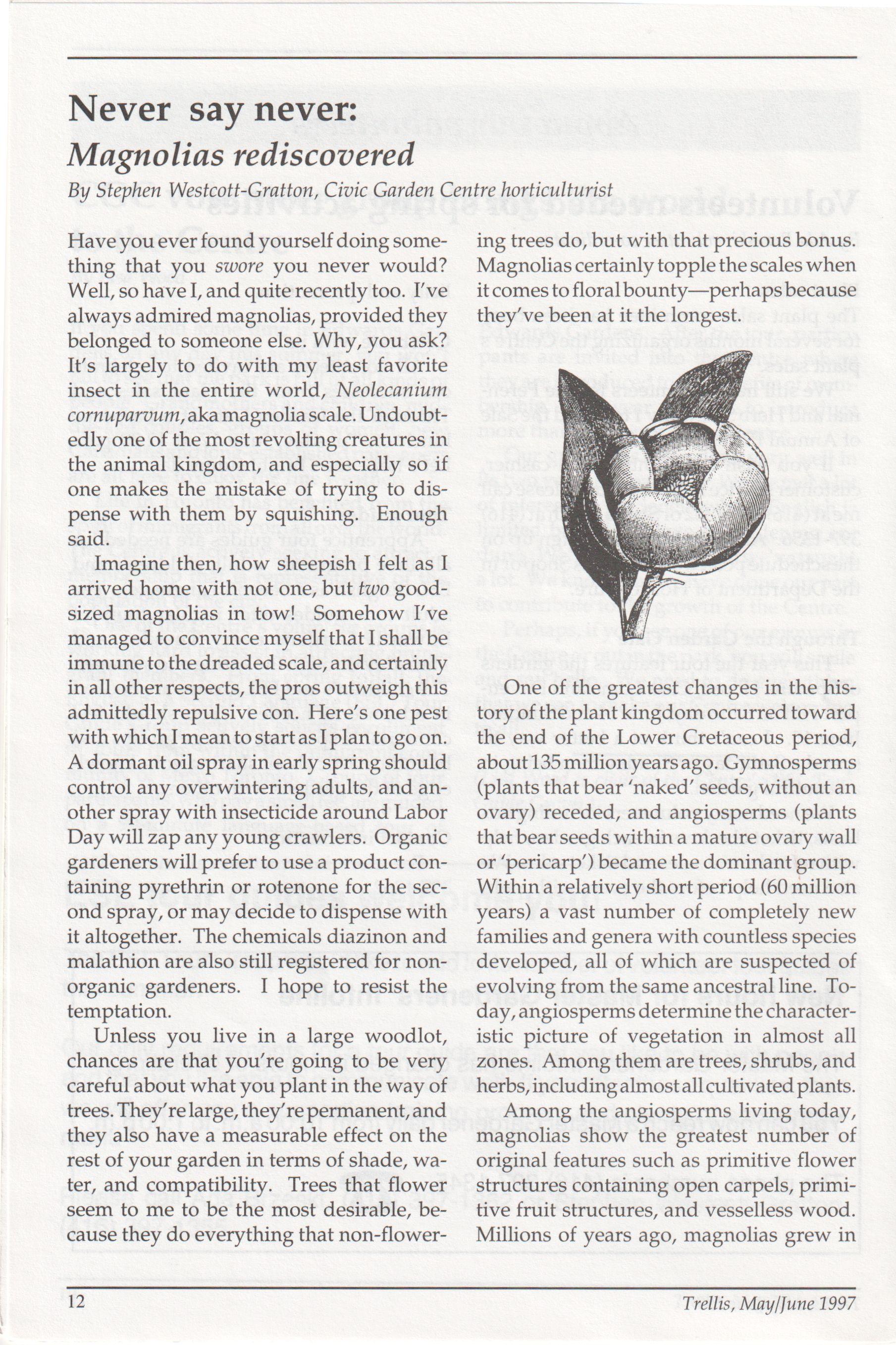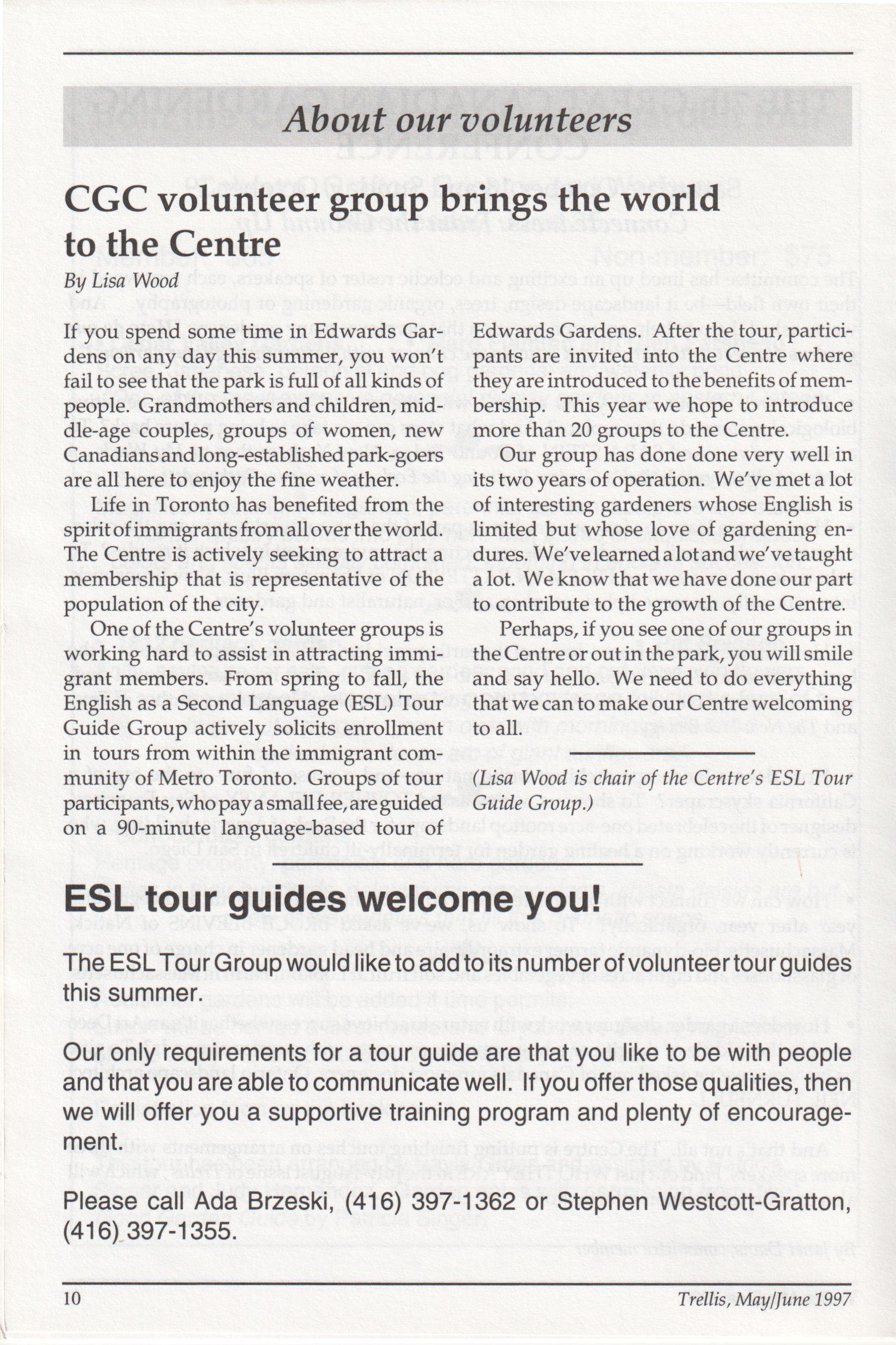 Trellis ispublishedsixtimesayearas amembers newsletter by the Civic Garden Centre, 777 Lawrence Avenue East, NorthYork,Ontario M3C1P2. Telephonenumber: (416)3971340.
