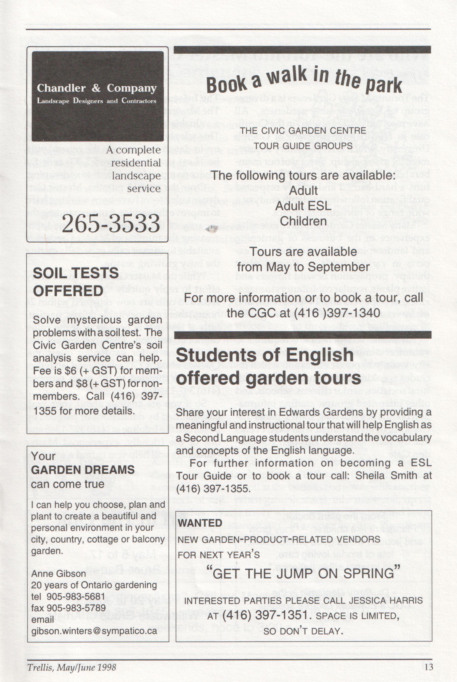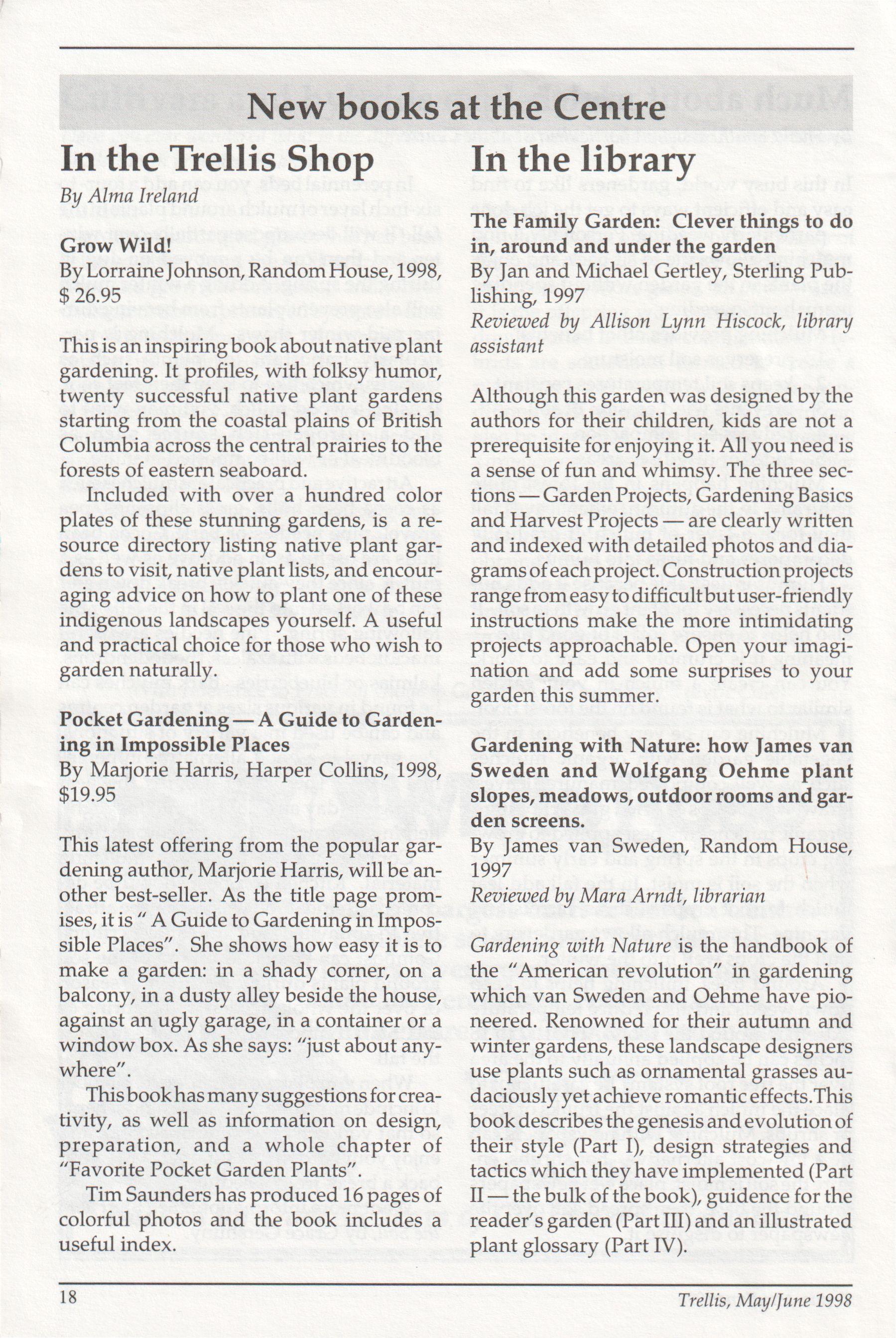 The newsletter of the Civic Garden Centre in Toronto May/June, 1998 Volume 25, Number 3