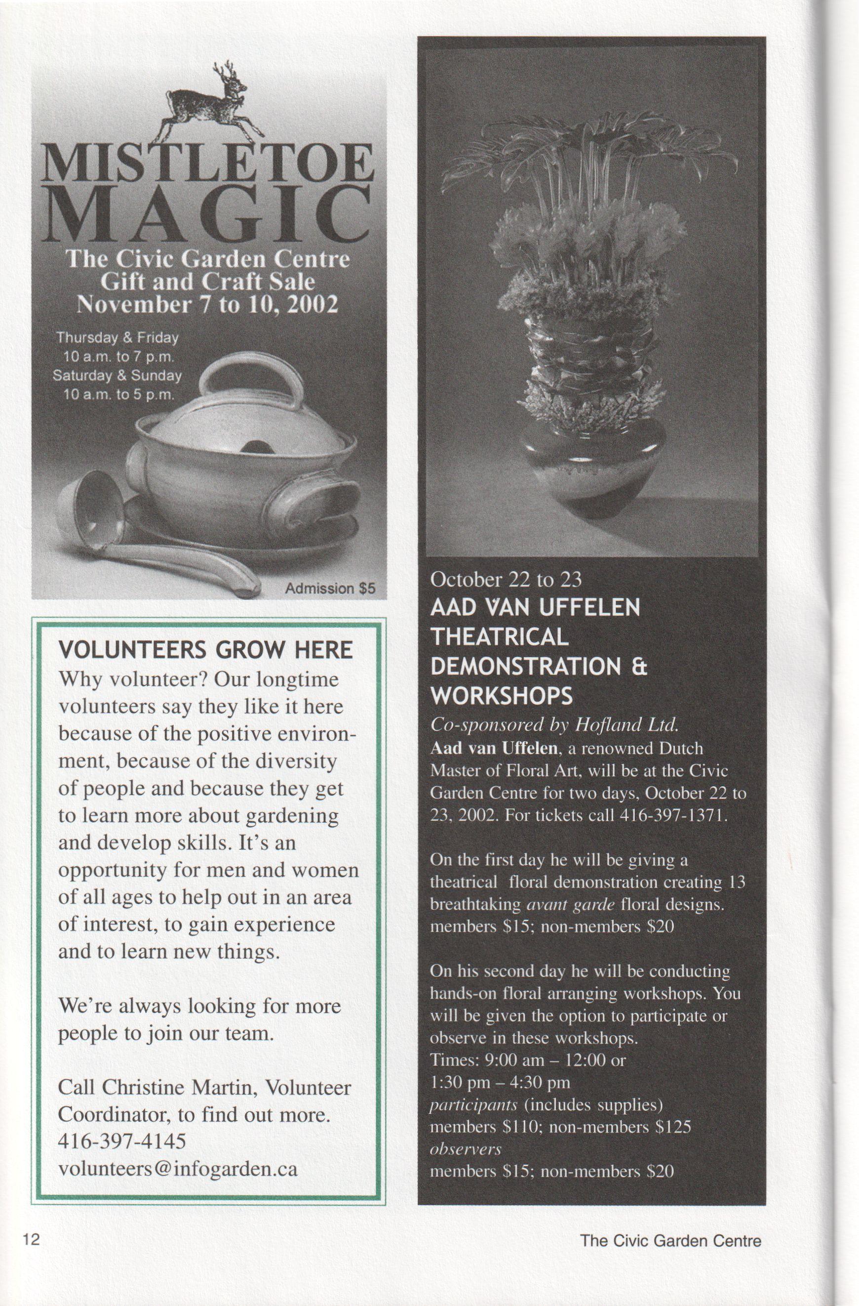 civicgardencentre@infogarden.ca Deadline for Nov/Dec issue, September 13, 2002